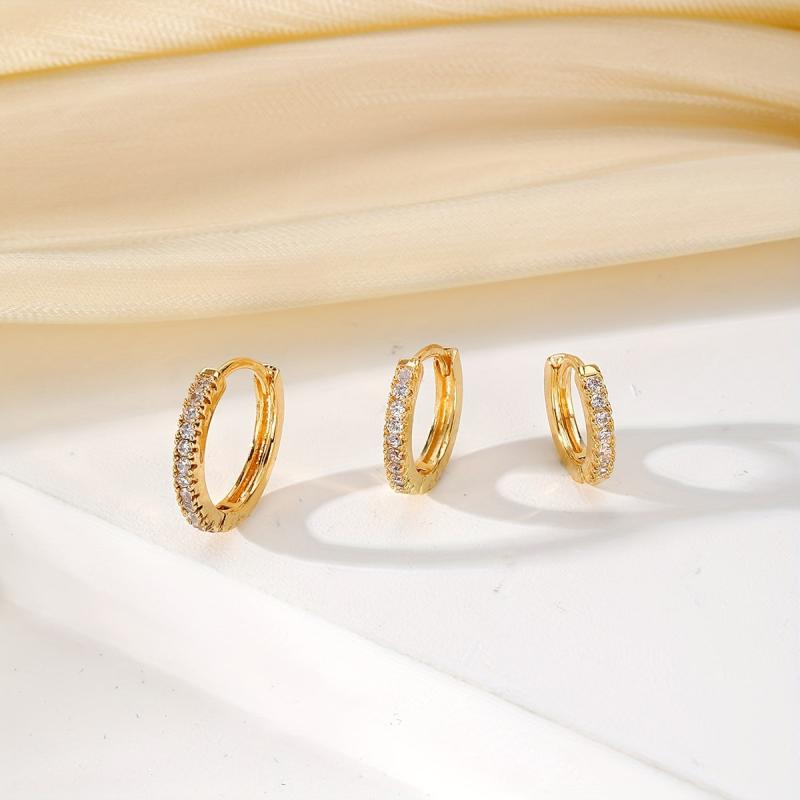 Enhance your style with this set of 3 single-sided earrings featuring golden and silvery designs with sparkling faux crystal inlays. Perfect for any occasion.