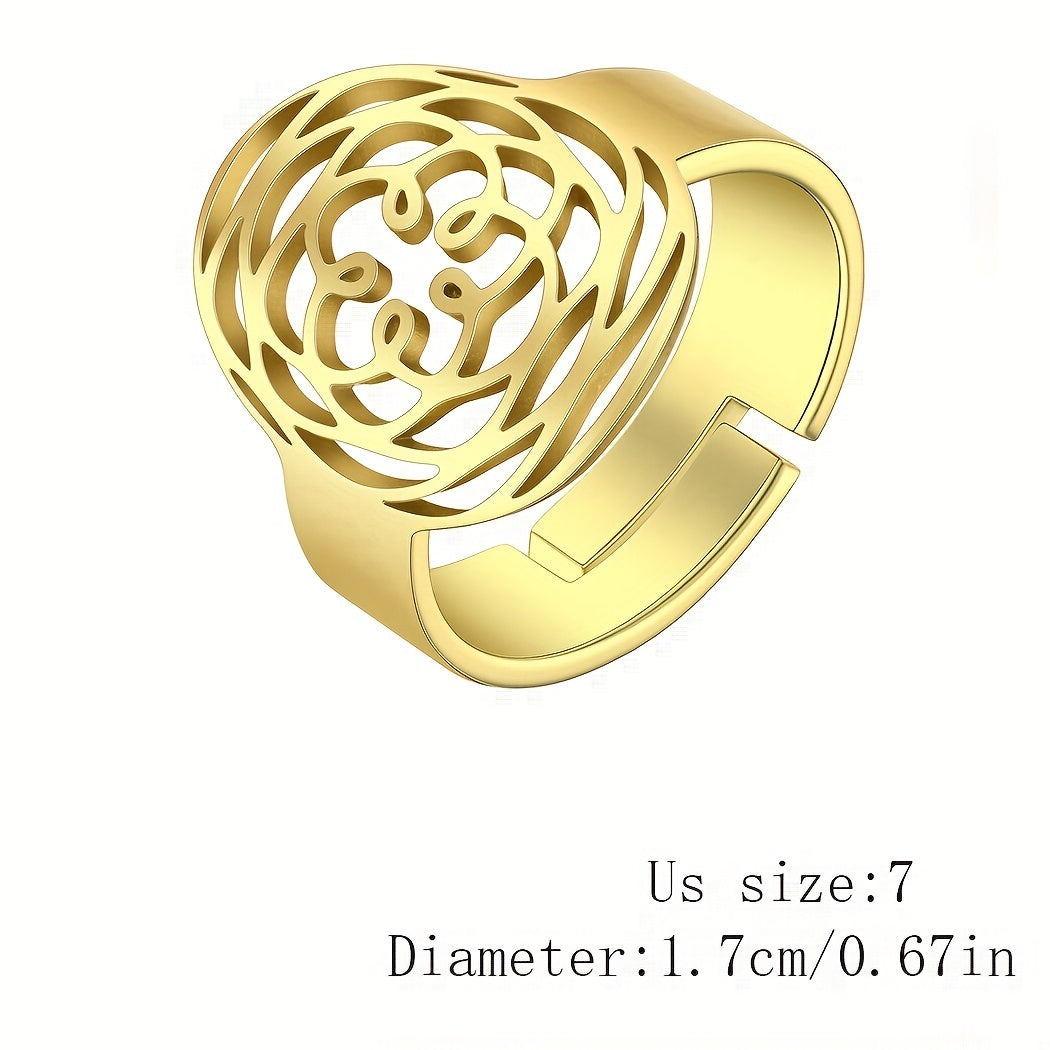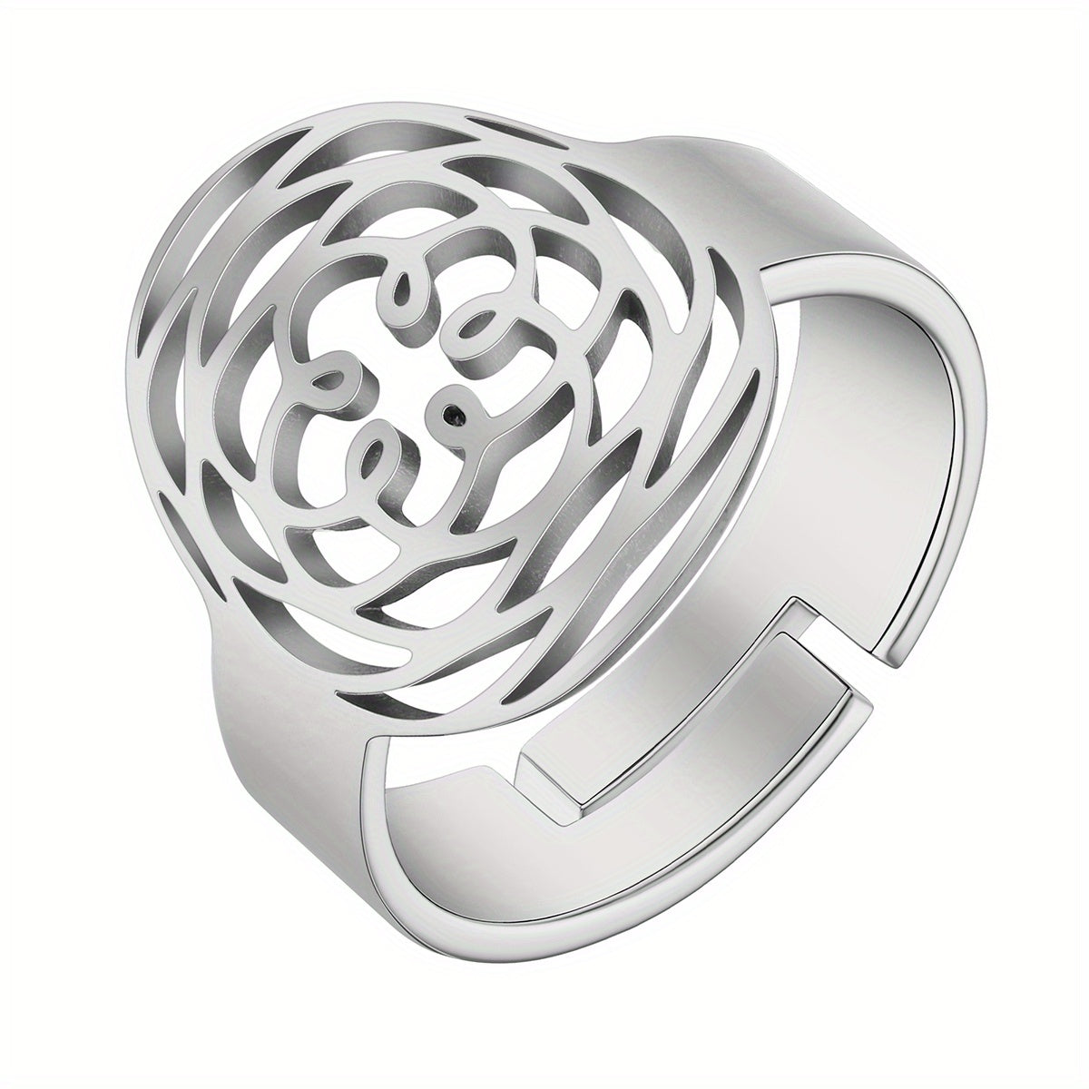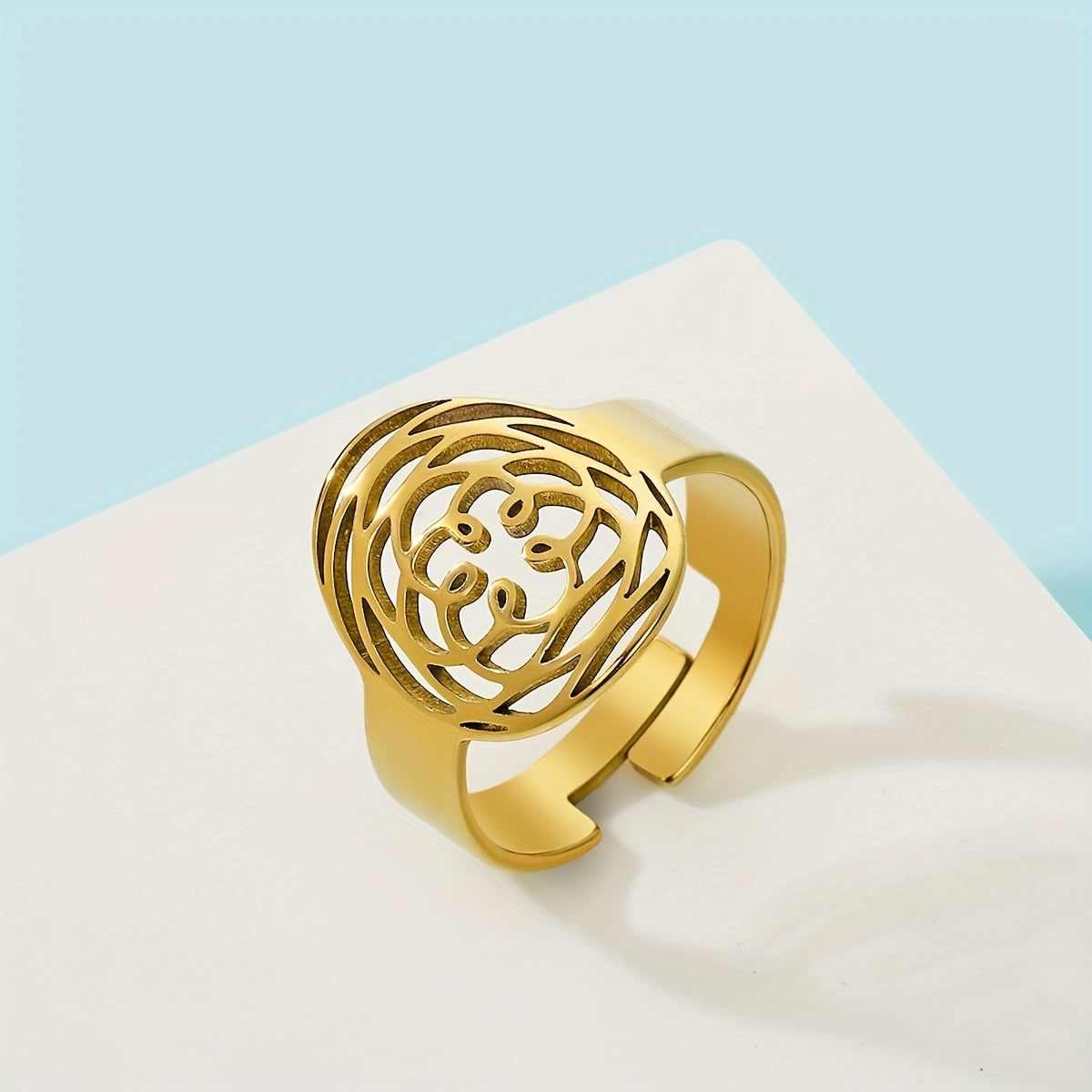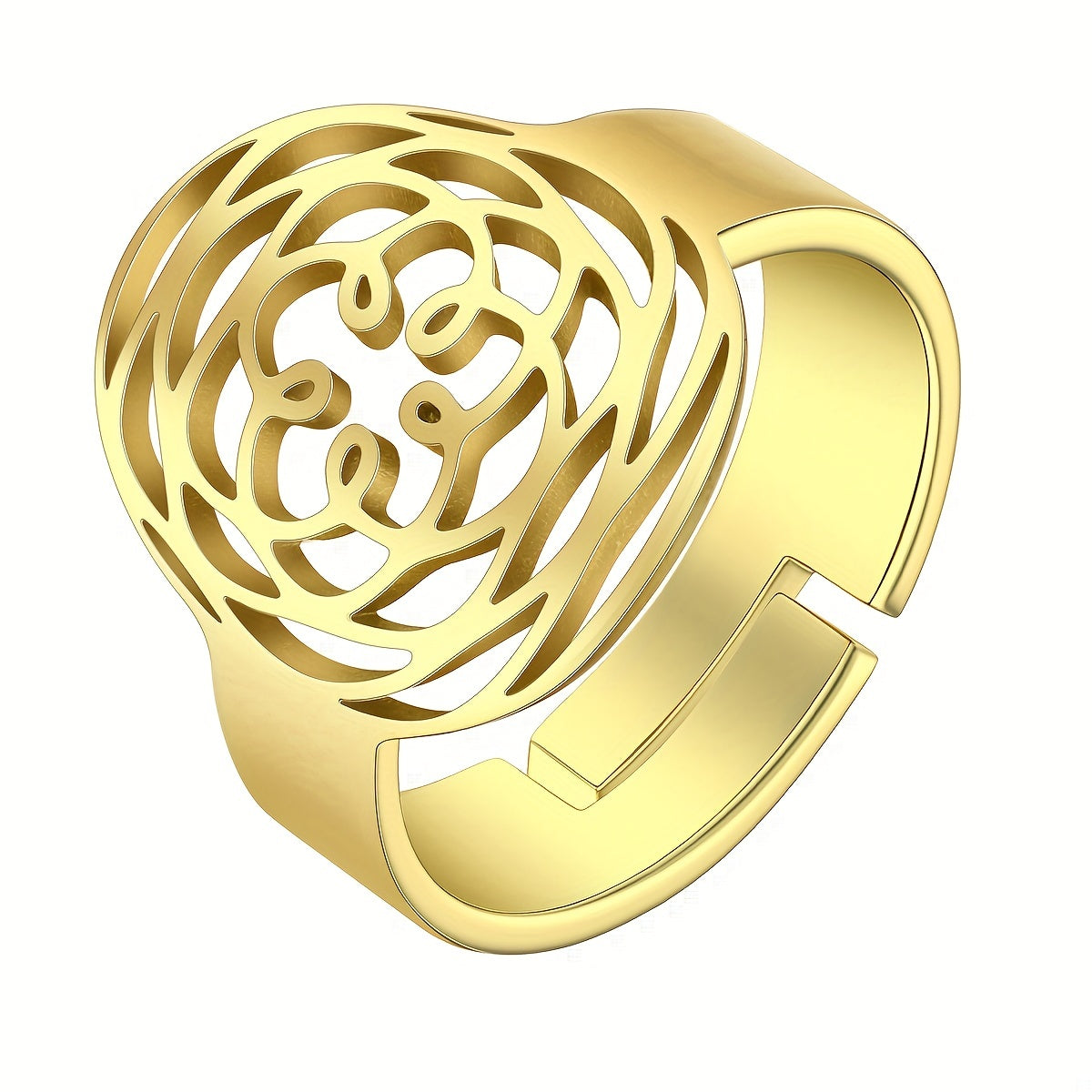 Enhance your party look with this stylish golden stainless steel ring featuring a rose pattern design.