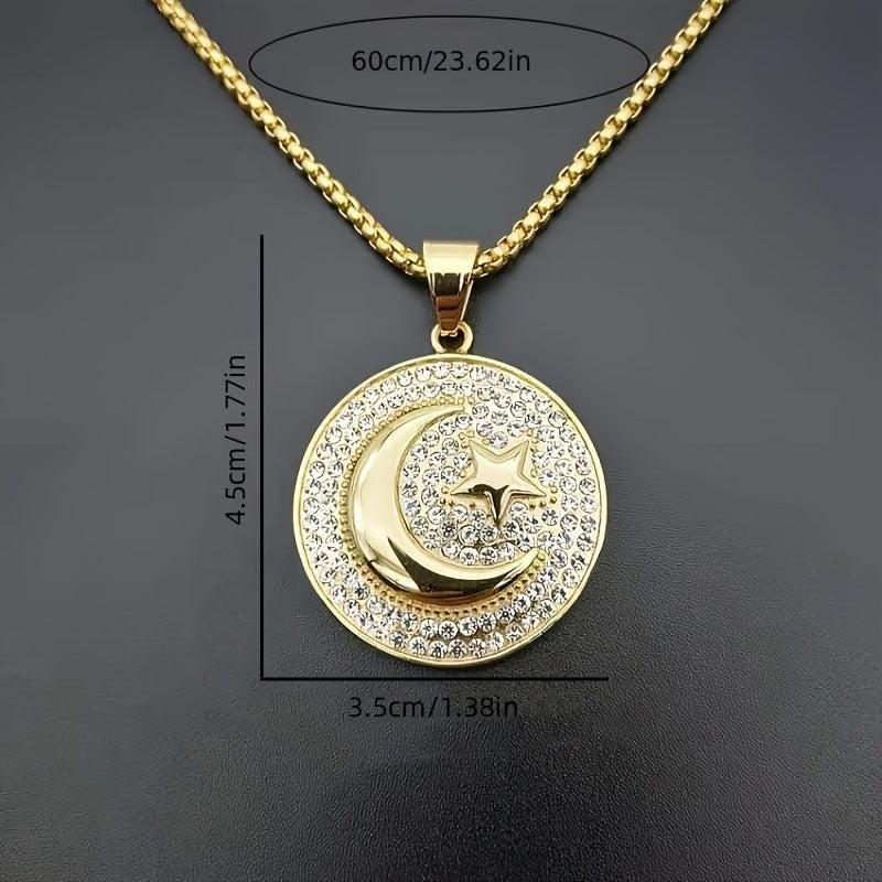Add a touch of elegance with this sparkling necklace featuring star and moon pendants on a golden chain. Perfect for daily wear or parties, this charm necklace is a versatile year-round accessory.