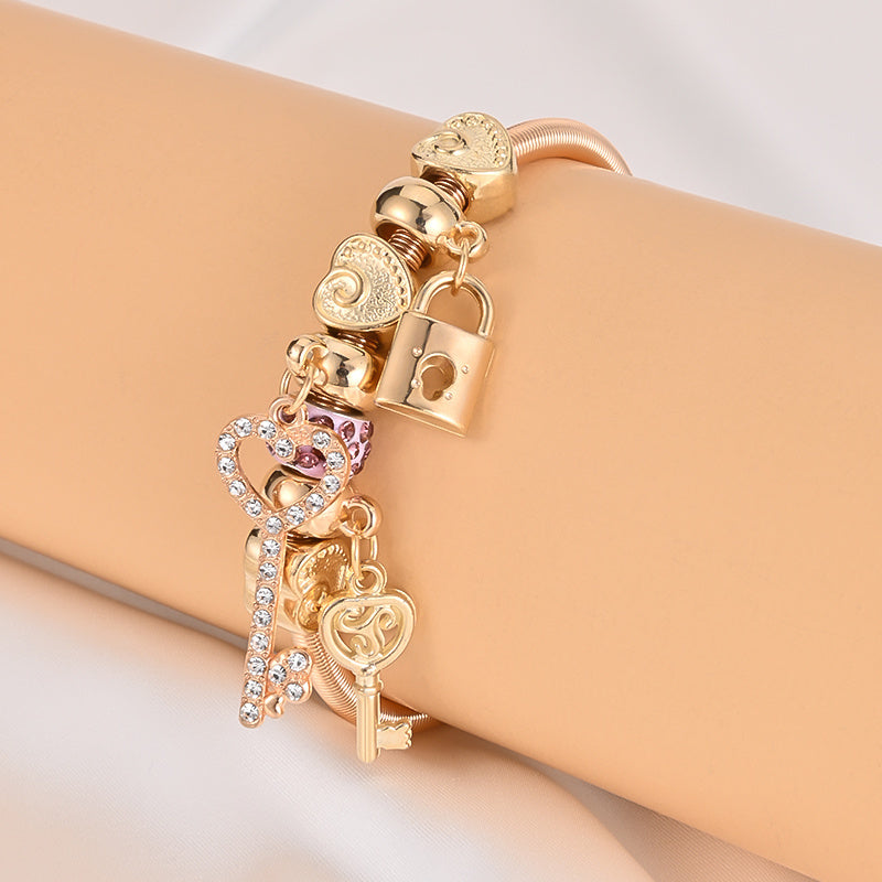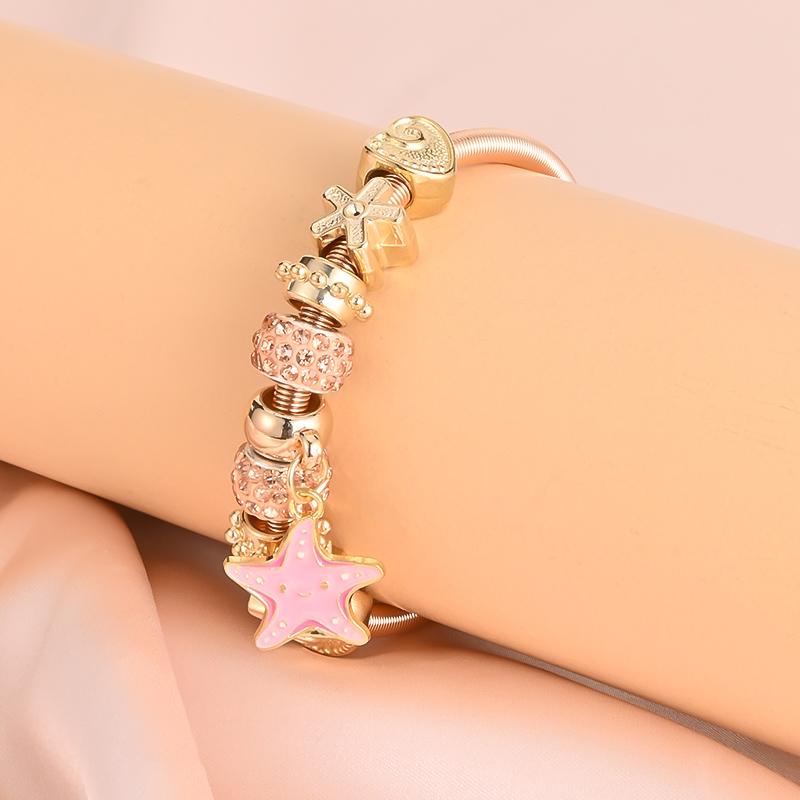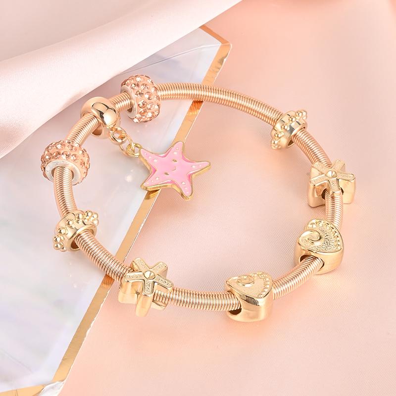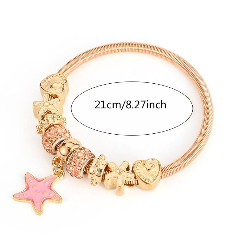 This golden bracelet features a starfish heart pendant on a stretch snake chain for a vintage look.