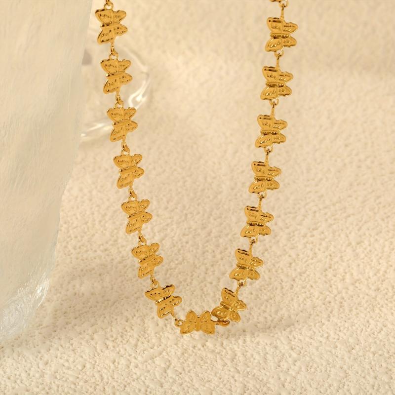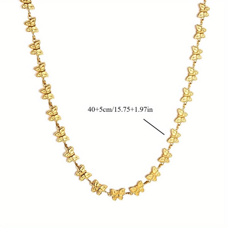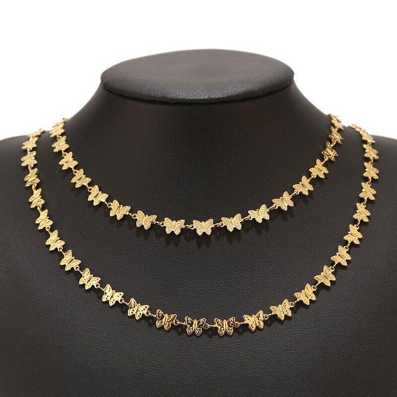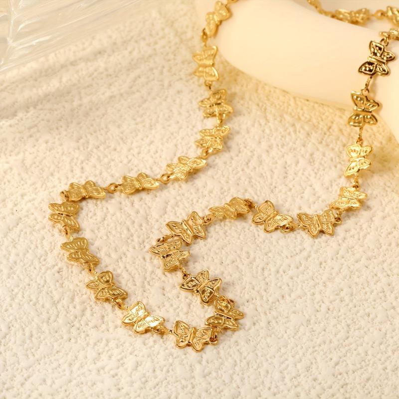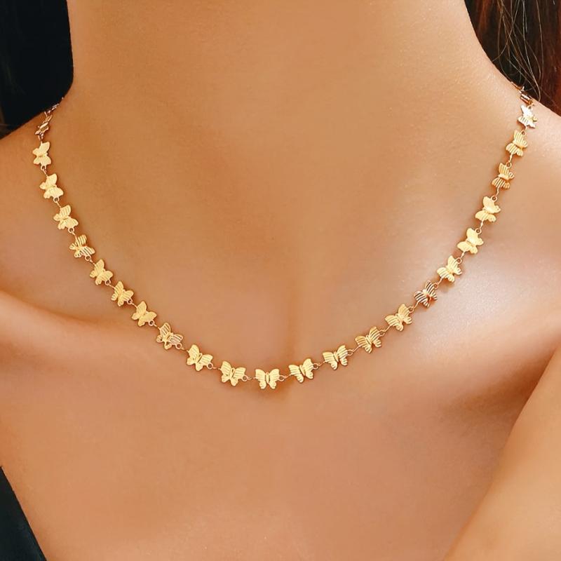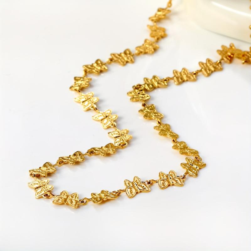 Add a touch of vintage elegance to your outfit with this golden tone butterfly necklace. Featuring a delicate chain and intricate butterfly design, this necklace is perfect for special occasions.