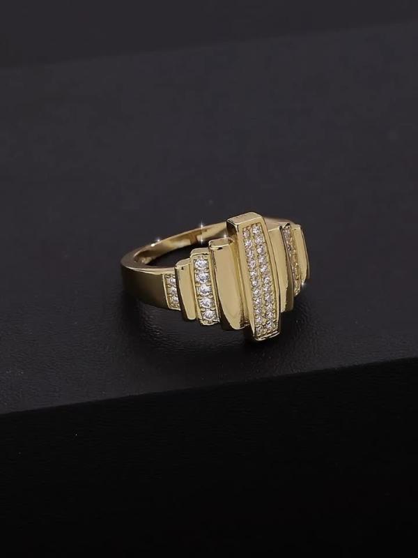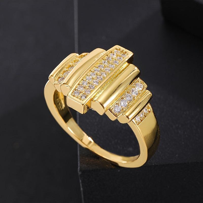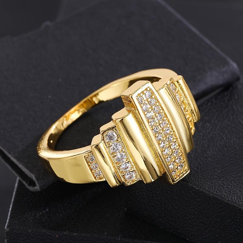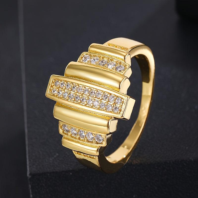Add a touch of elegance to your everyday look with this golden tone copper ring featuring three bands and sparkling zirconia stones. Perfect for daily wear or special occasions like Christmas and birthdays.