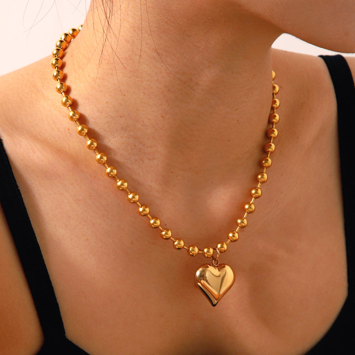 This vintage heart pendant necklace features a beaded chain and a timeless design. A perfect accessory for everyday wear or special occasions, this necklace makes a great gift for women.