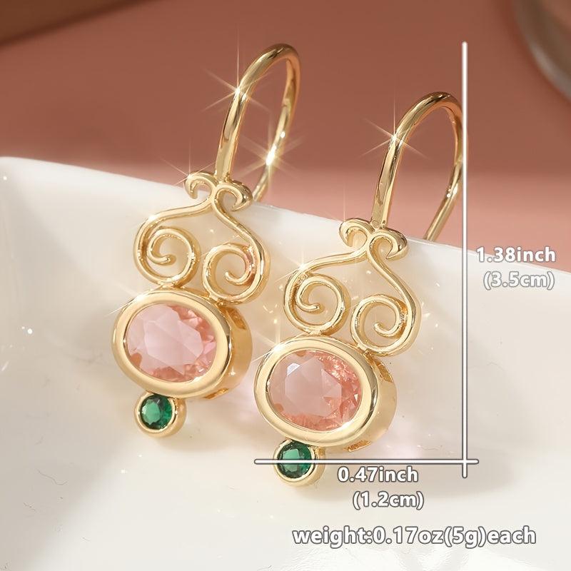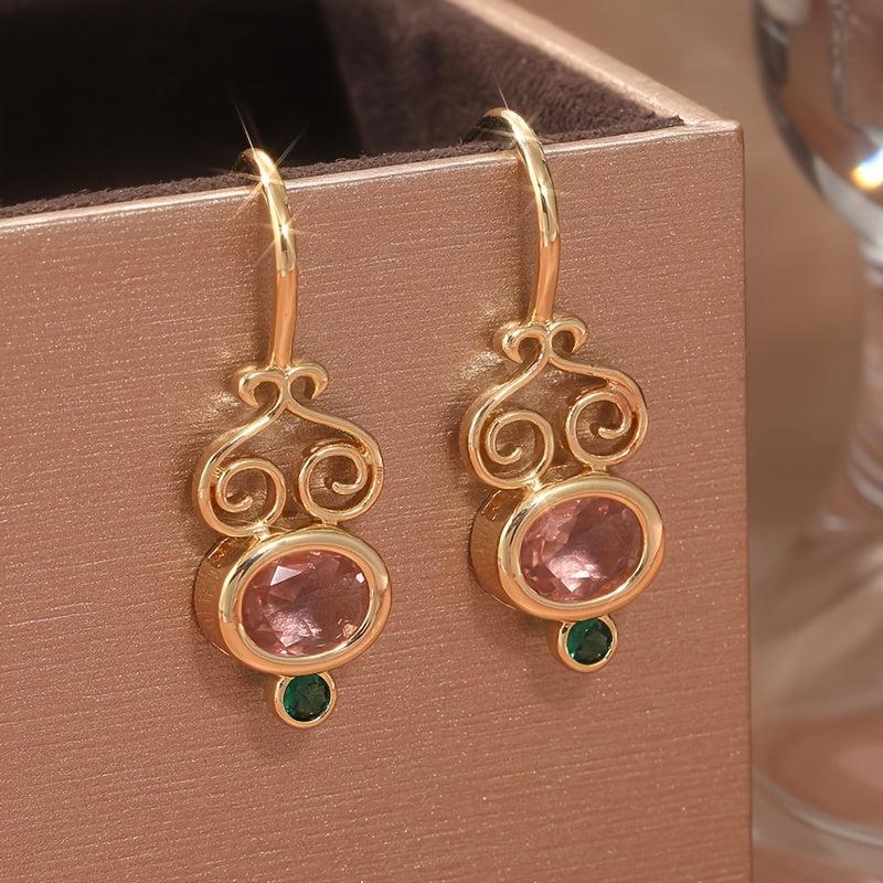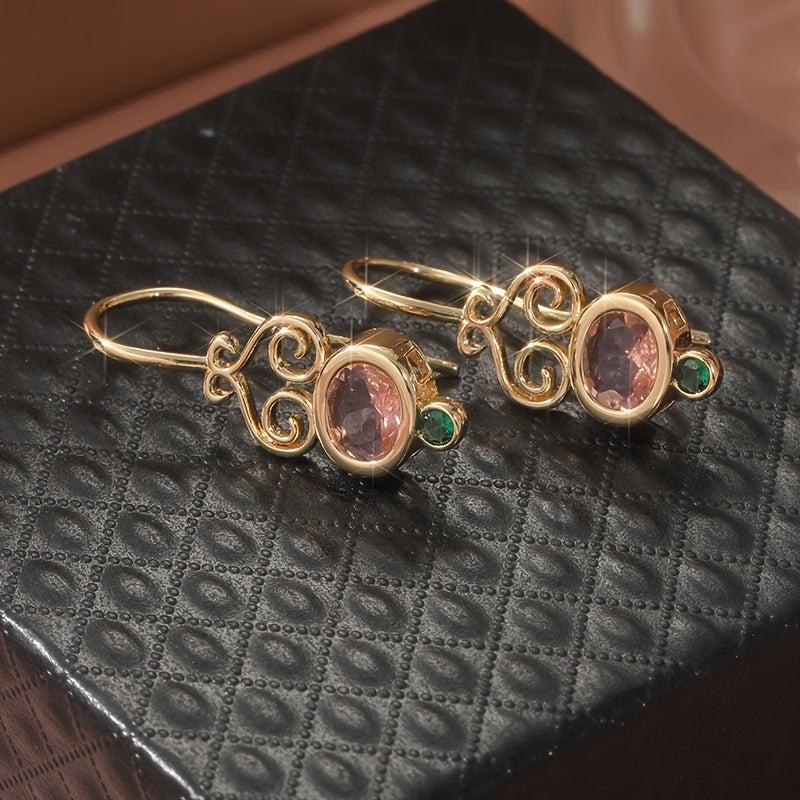 Add a touch of elegance to your look with these stunning Golden Tone Oval Synthetic Cubic Zirconia earrings. The intricate swirling design and green accents make them a perfect statement piece.