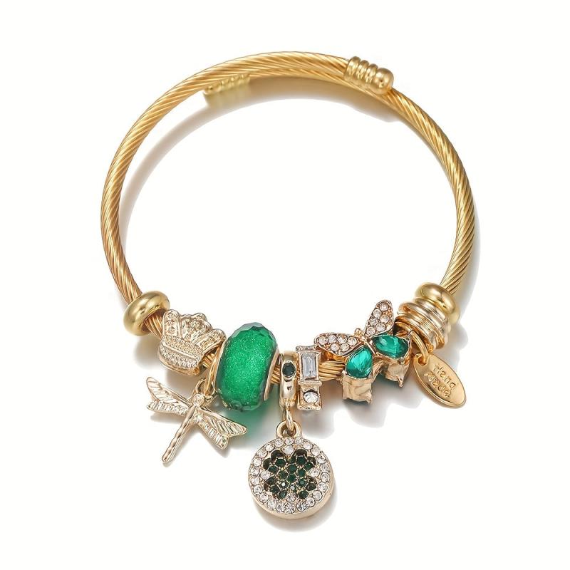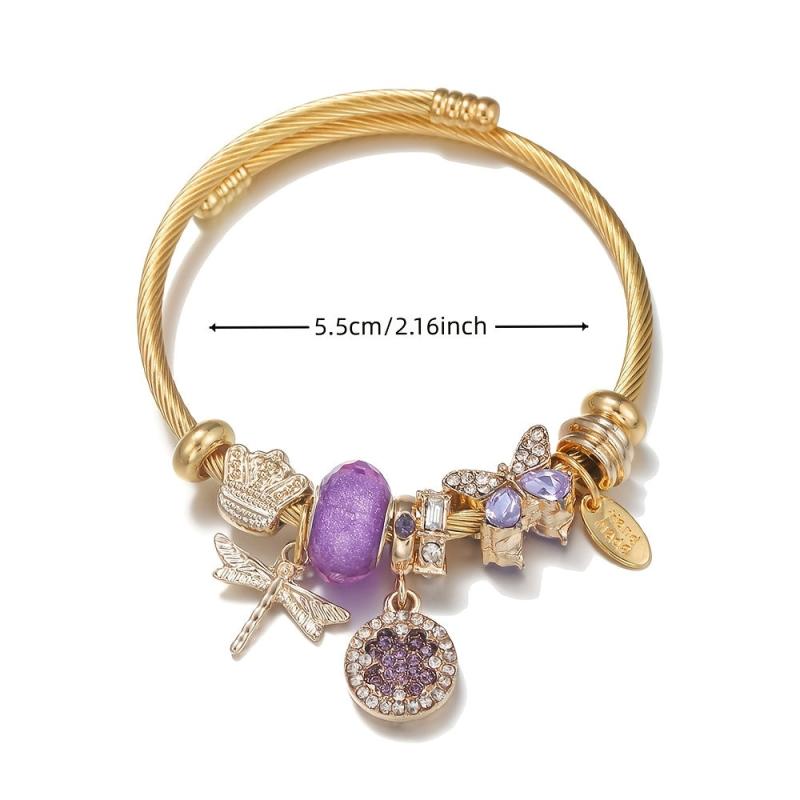 This stainless steel charm bracelet features beautiful butterfly and leaf motifs, making it perfect for daily wear.