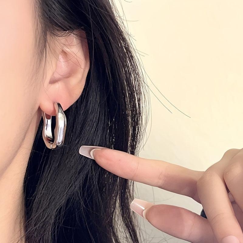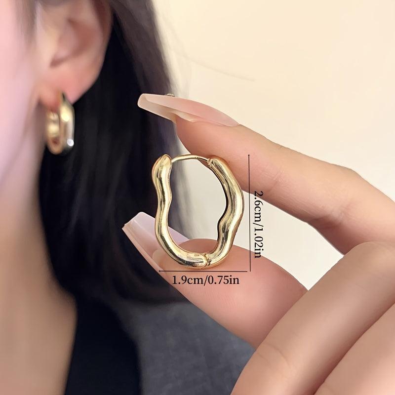 These irregular U-shaped hoop earrings are perfect for daily wear and parties, featuring a golden tone design. Made of alloy with stainless steel posts, they are a great addition to any jewelry collection.