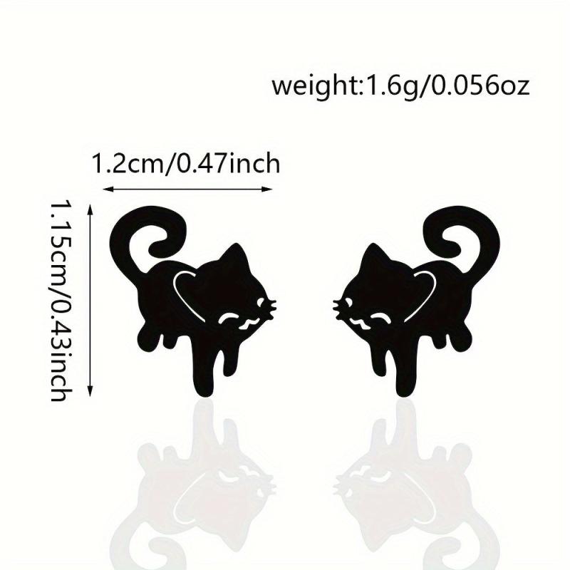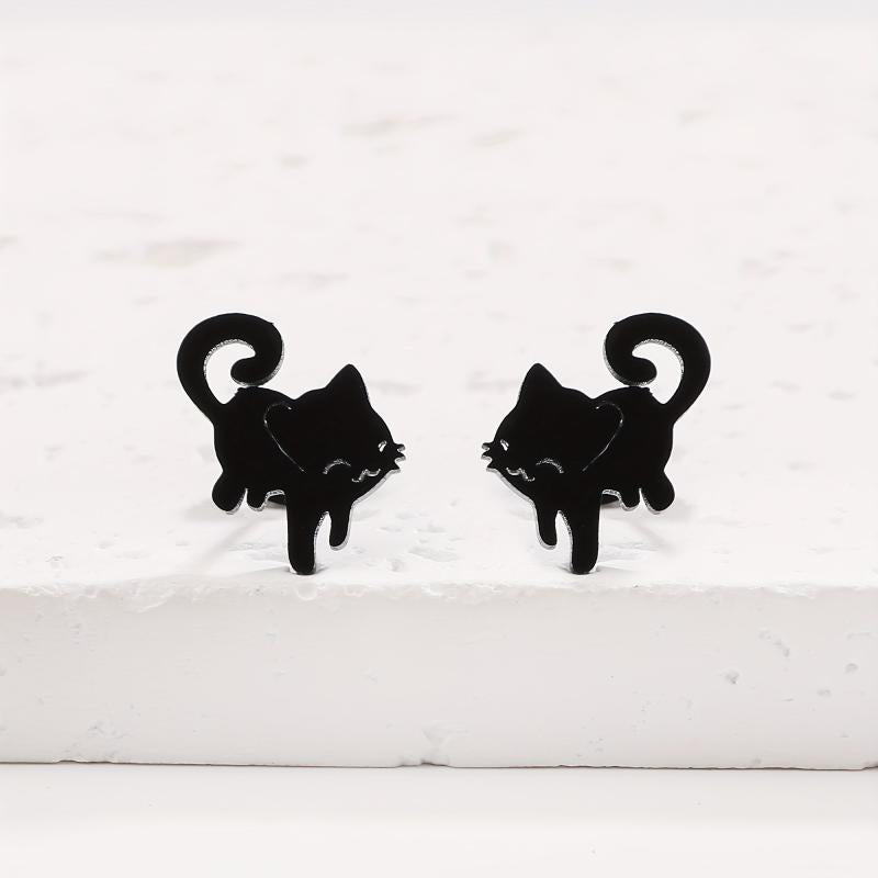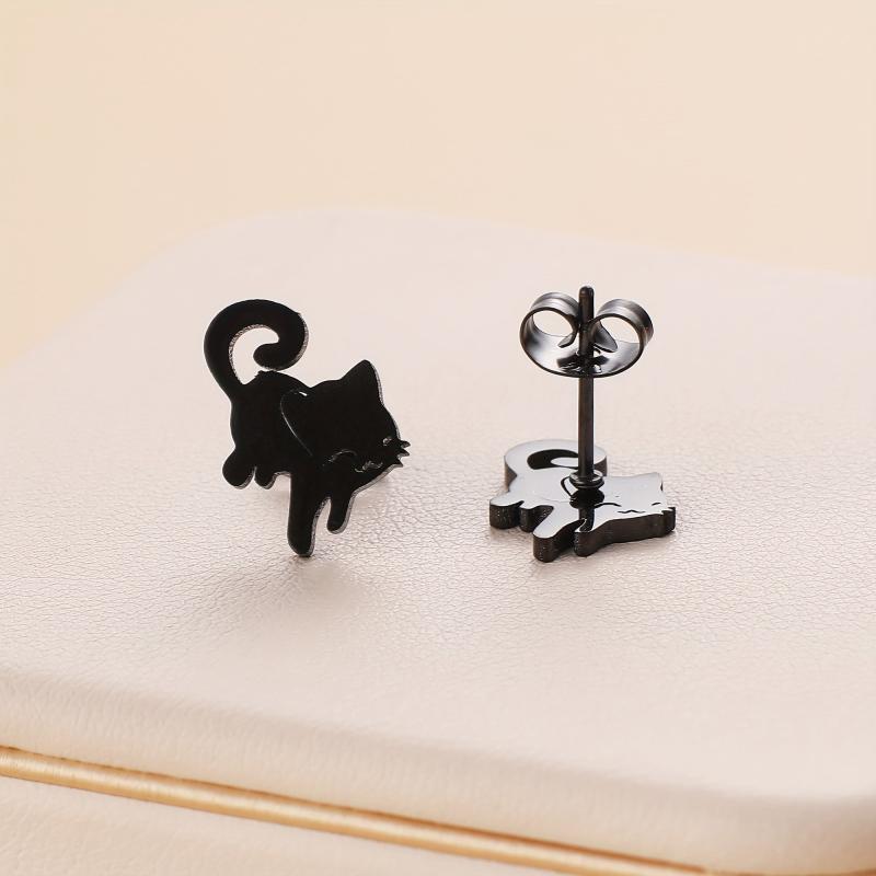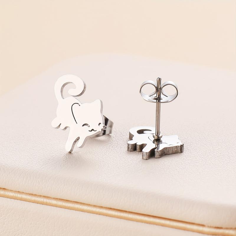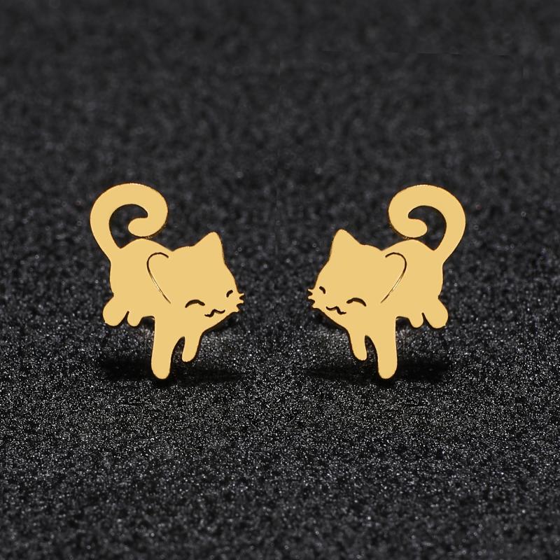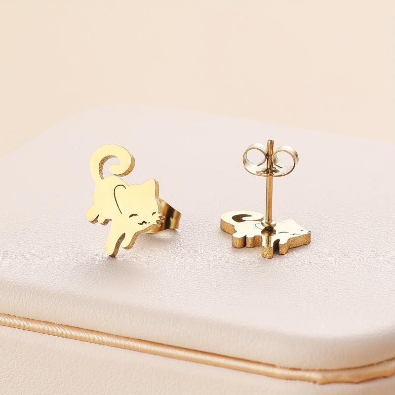 These playful cat earrings are crafted from high-quality 316L stainless steel with a golden tone finish. They feature adorable curled tails and are suitable for daily wear or parties as a fun accessory.