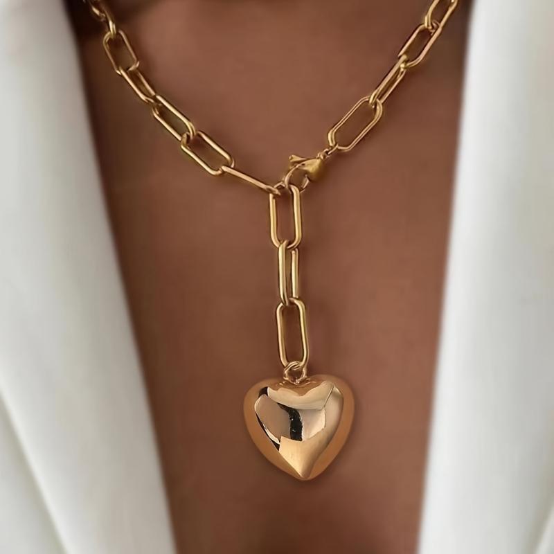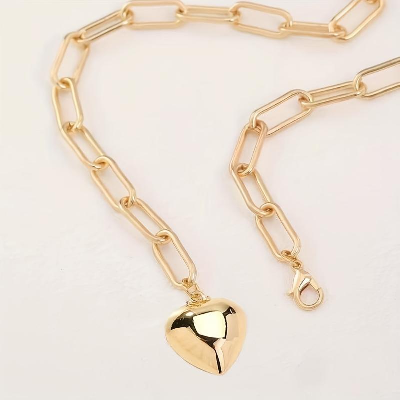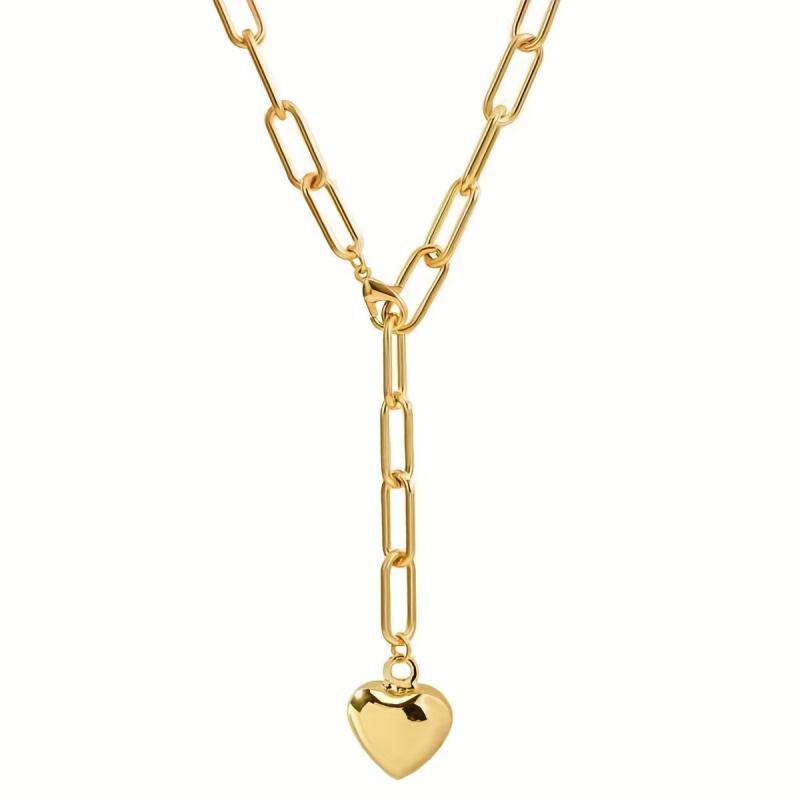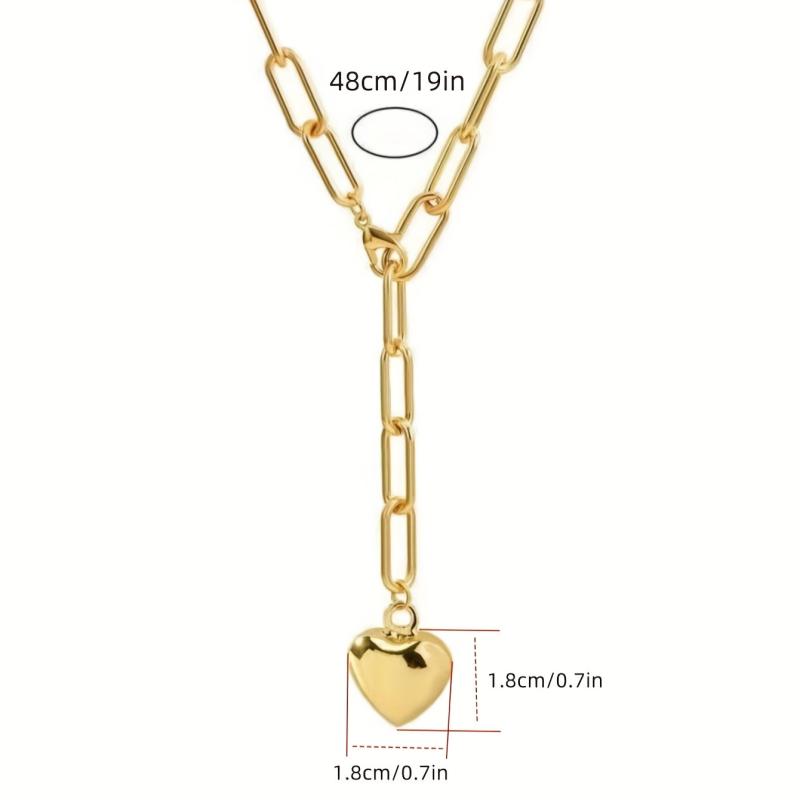 Stainless steel heart pendant necklace featuring a polished finish rectangular chain. Ideal for casual wear or parties, this necklace makes a perfect gift for women on Mother's Day.