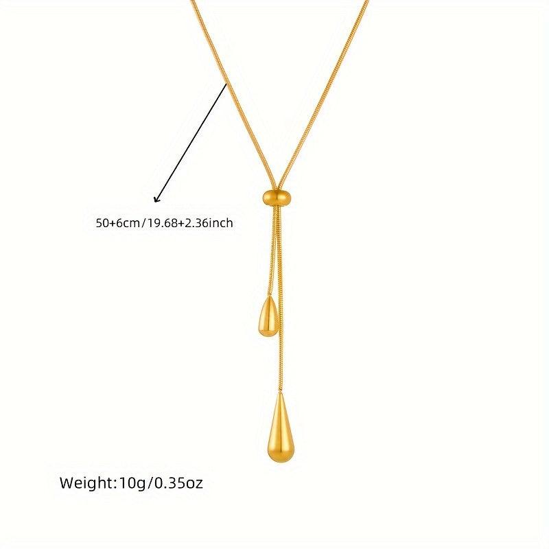 Elegant women's jewelry set made of stainless steel, featuring a golden water droplet tassel pendant design. Perfect for parties and as a gift.