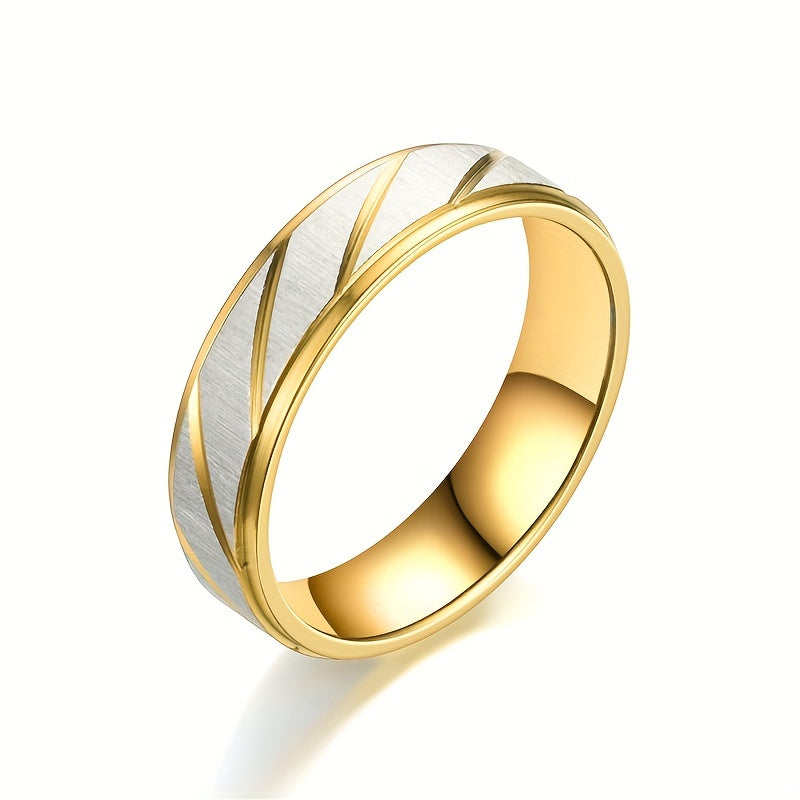 This men's titanium steel ring features a golden wave pattern, perfect for wedding proposals and engagements.