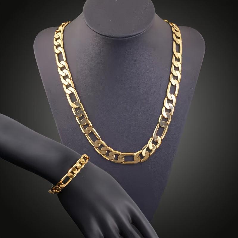 Elegant 2pcs set of a necklace and bracelet in gold, perfect for daily wear, weddings, and parties.