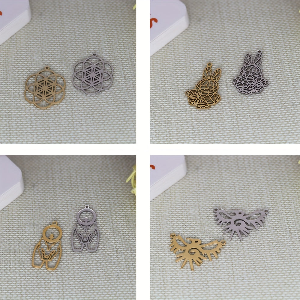 Create beautiful earrings, bracelets, necklaces, and accessories with these stainless steel pendants. The set includes a variety of shapes to add a touch of elegance to your handmade pieces.