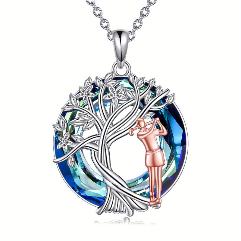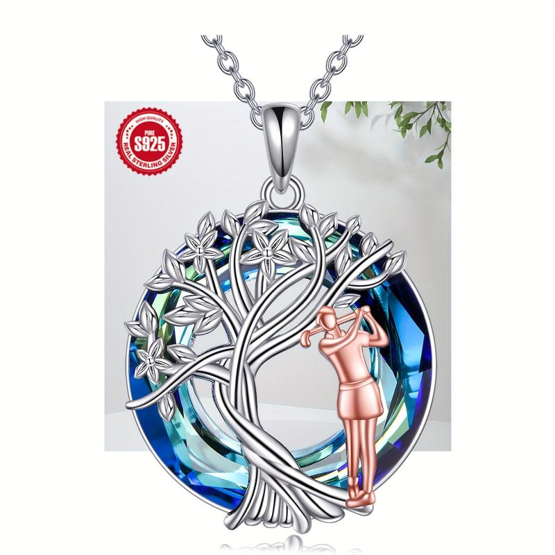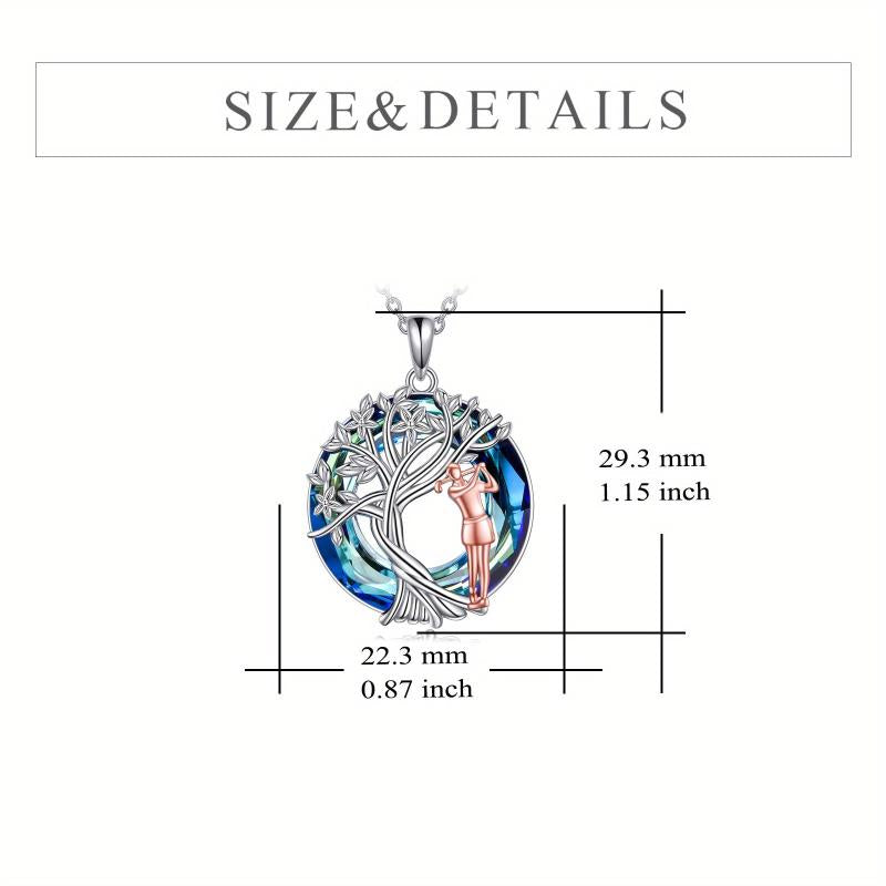 This elegant golf necklace features a sterling silver pendant with artificial crystal accents, creating a stunning tree of life design. Perfect for golf lovers, it makes a great birthday or graduation gift for women who enjoy the sport.