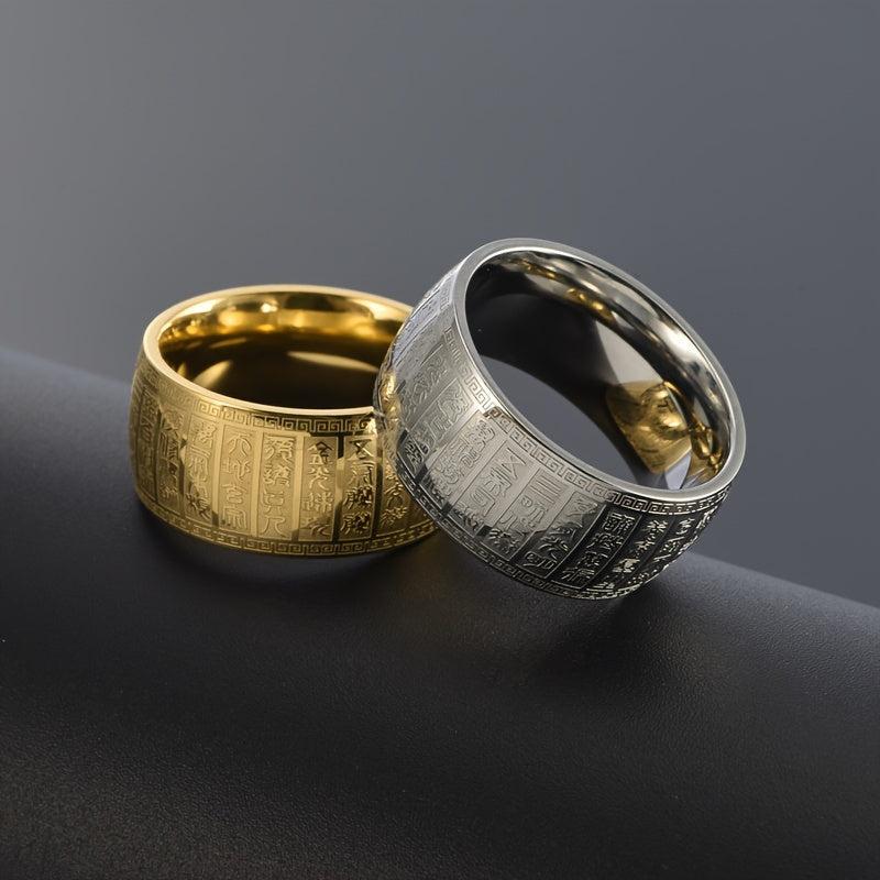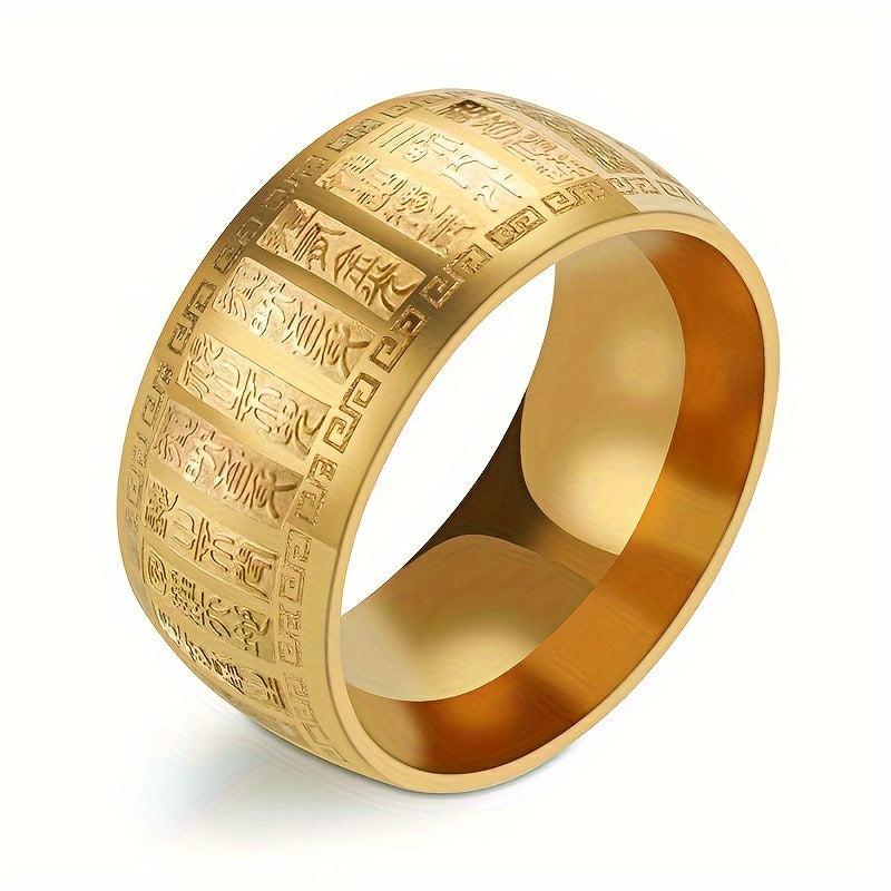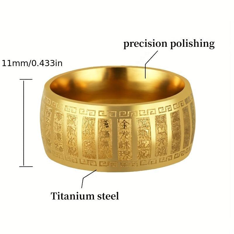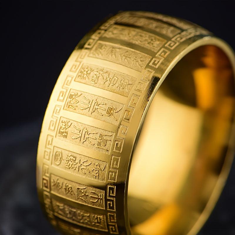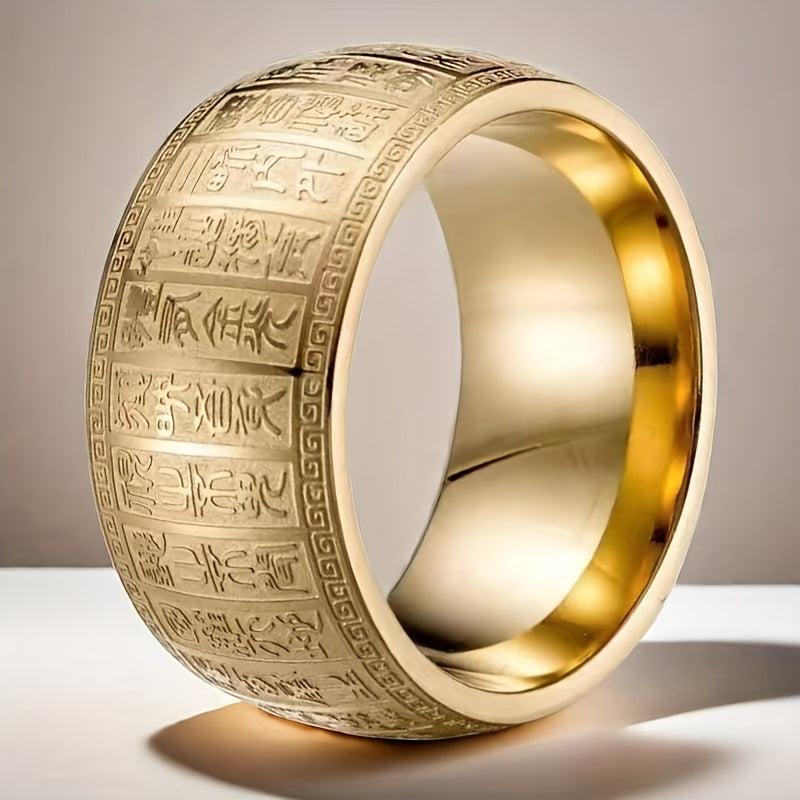 This Lord Of Good Luck Ring is made of high-quality titanium steel in a golden light finish. It symbolizes fortune and luck, bringing positive energy to the wearer. It is a stylish accessory that carries a touch of mystical charm.