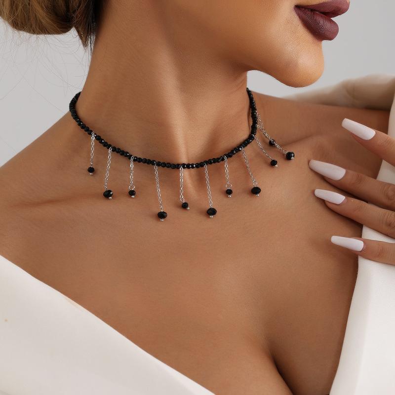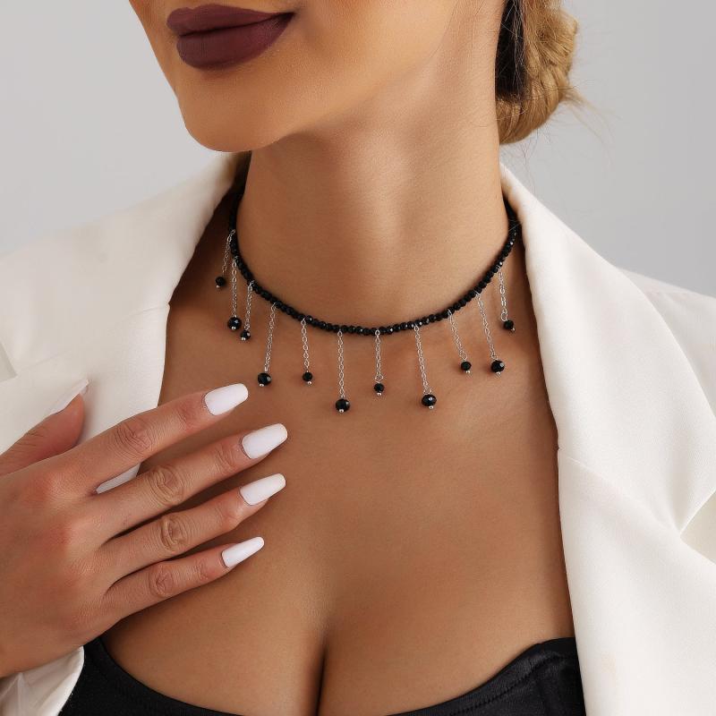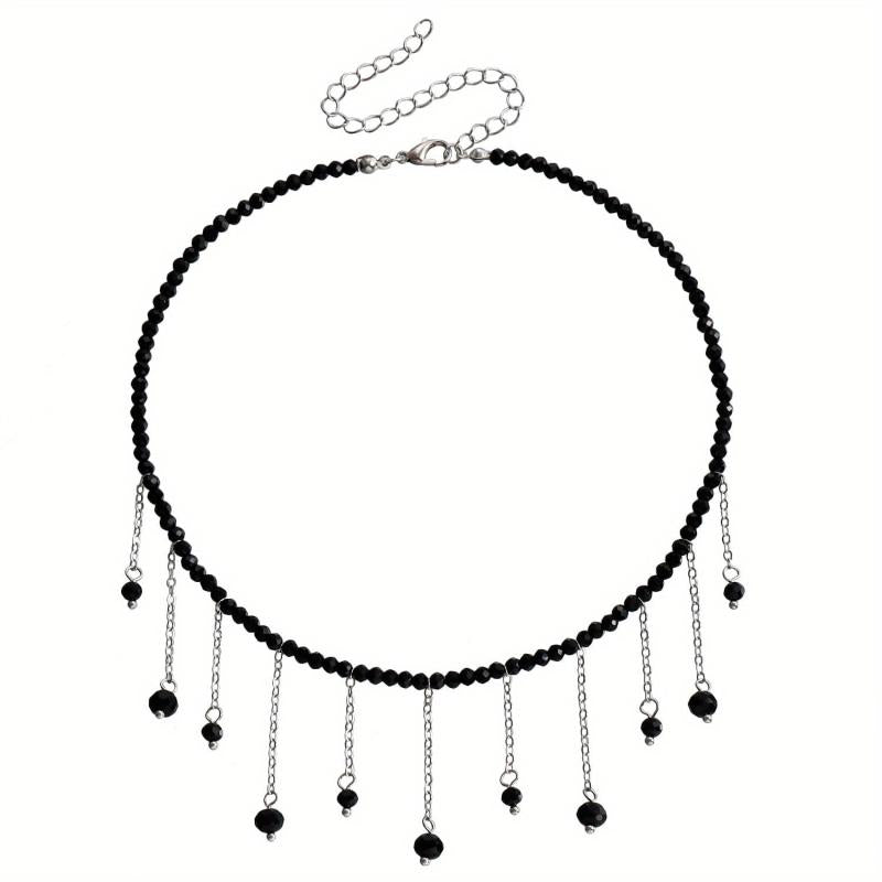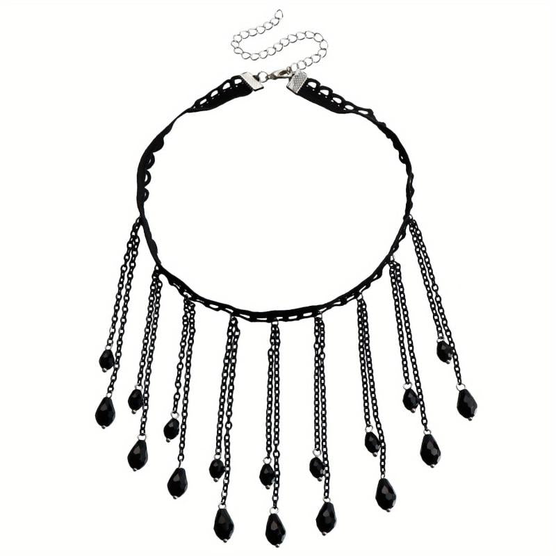 Add a touch of gothic style with this beaded tassel choker necklace. Perfect for parties, music festivals, and casual attire.