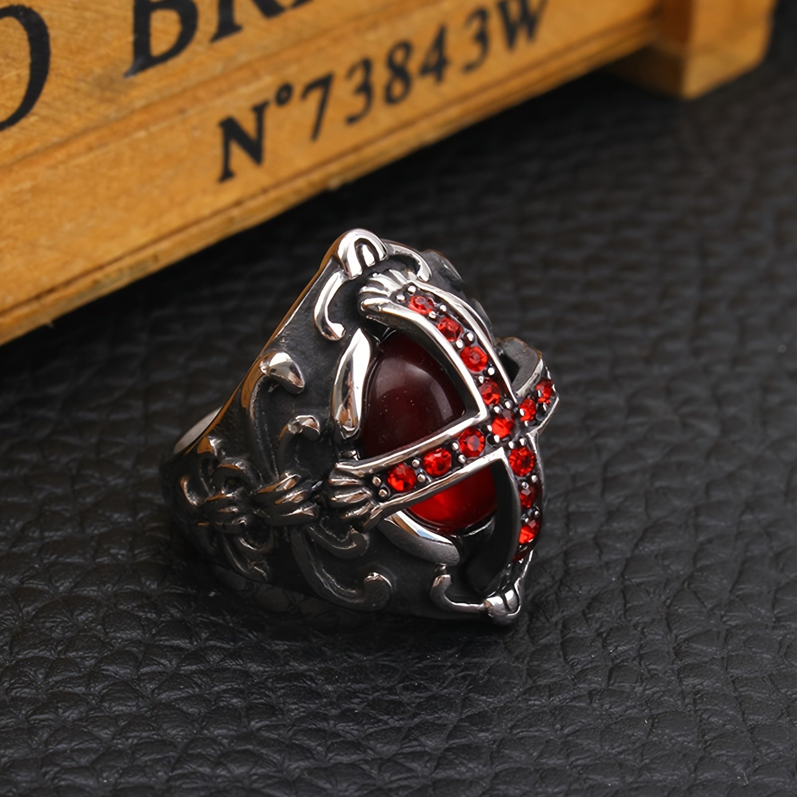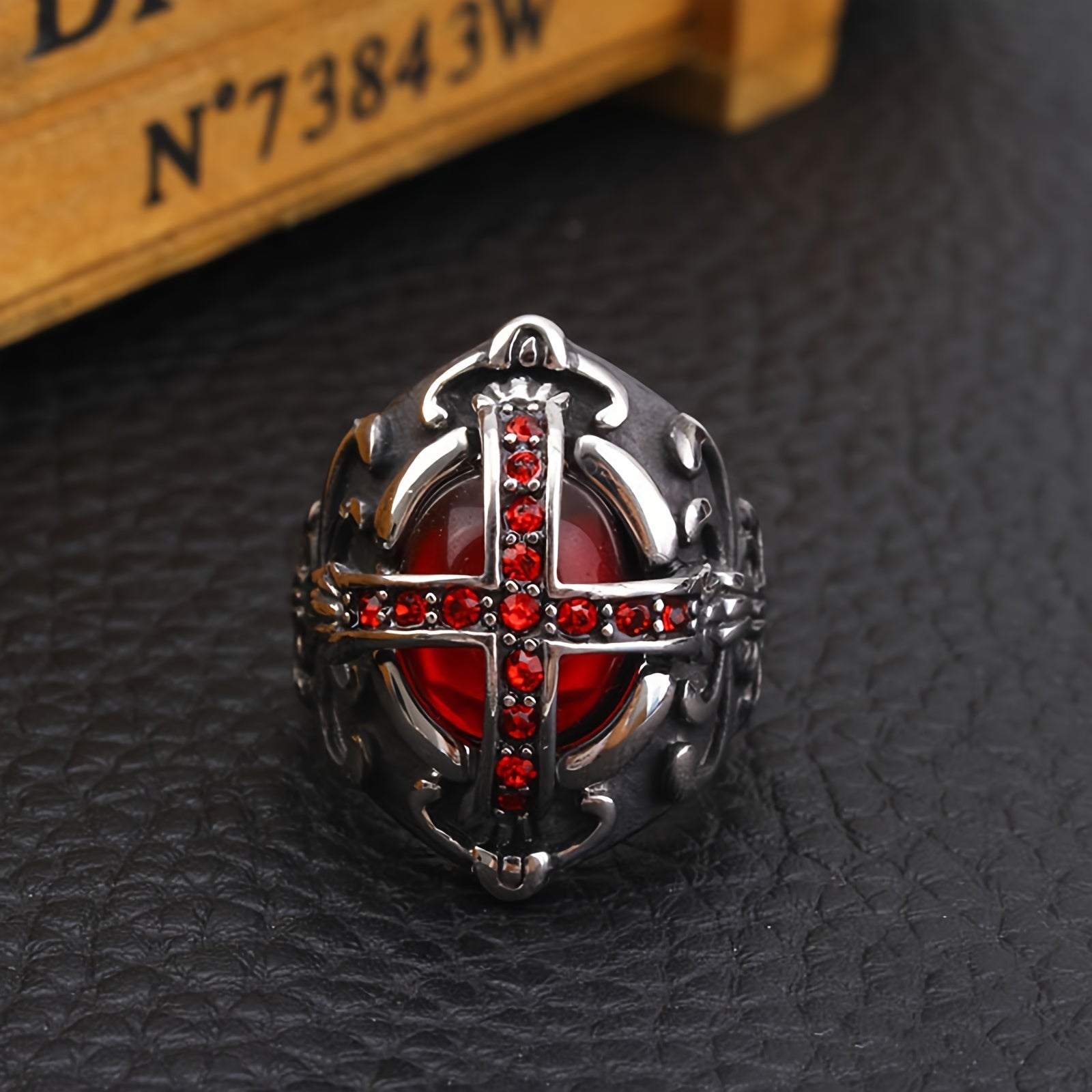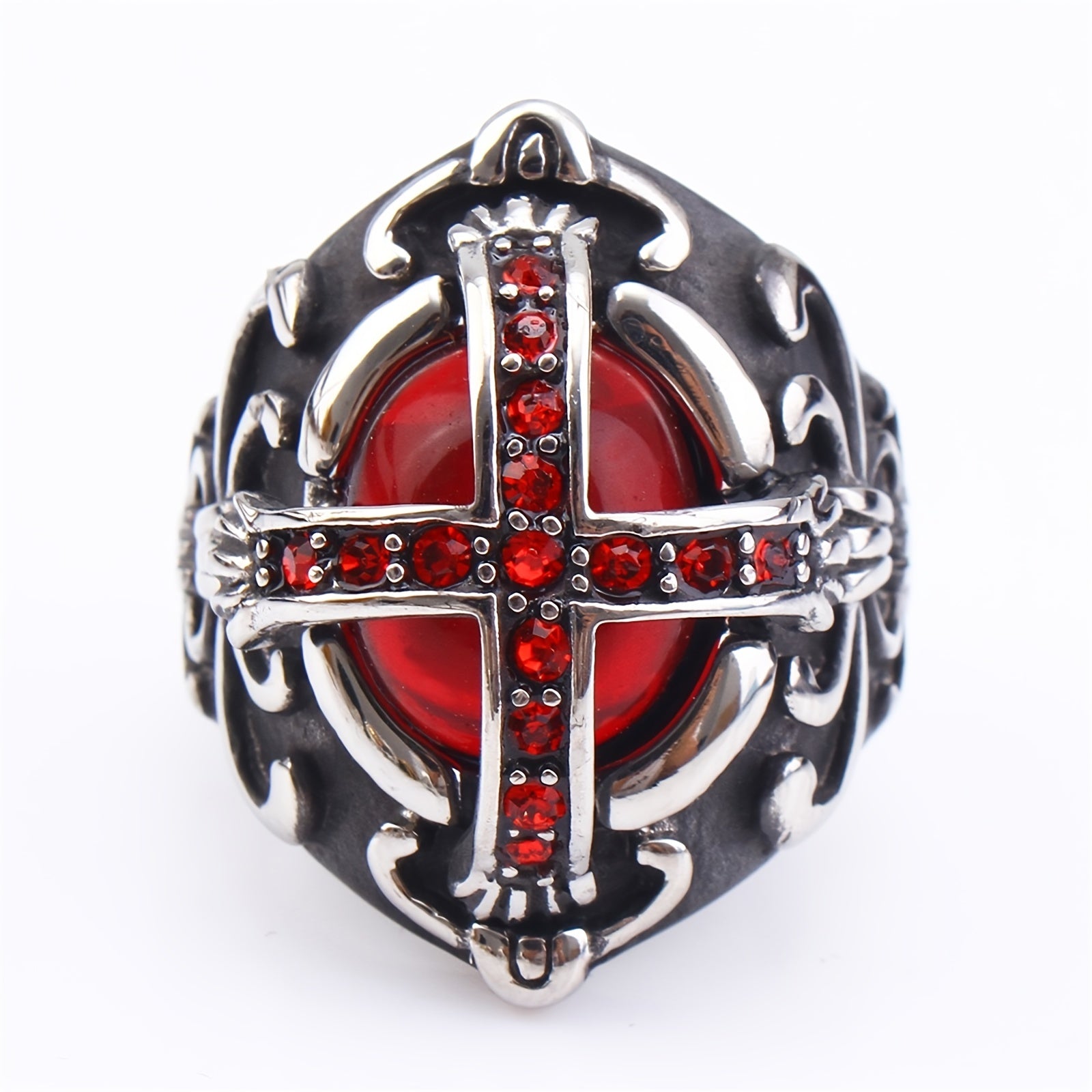 Embrace the gothic style with this retro red zircon stainless steel ring featuring a cross design. Perfect for men who appreciate unique accessories.
