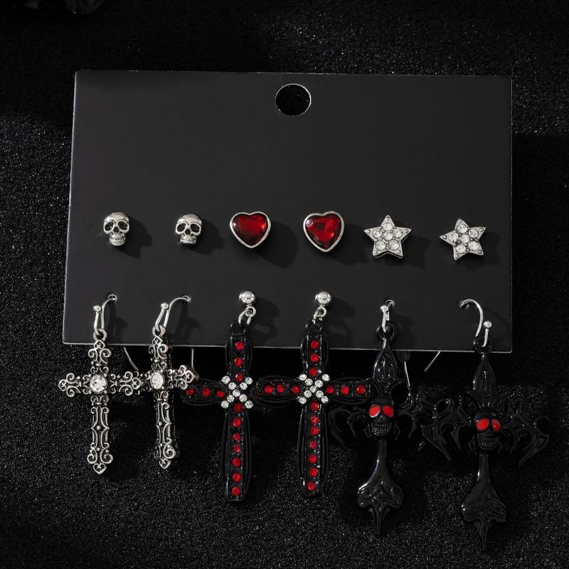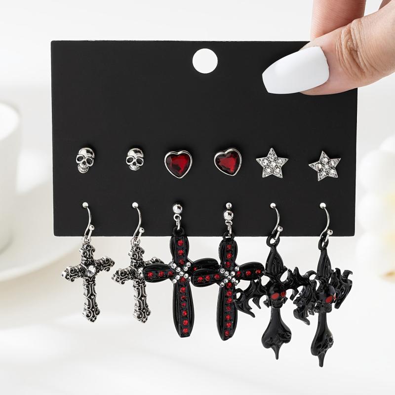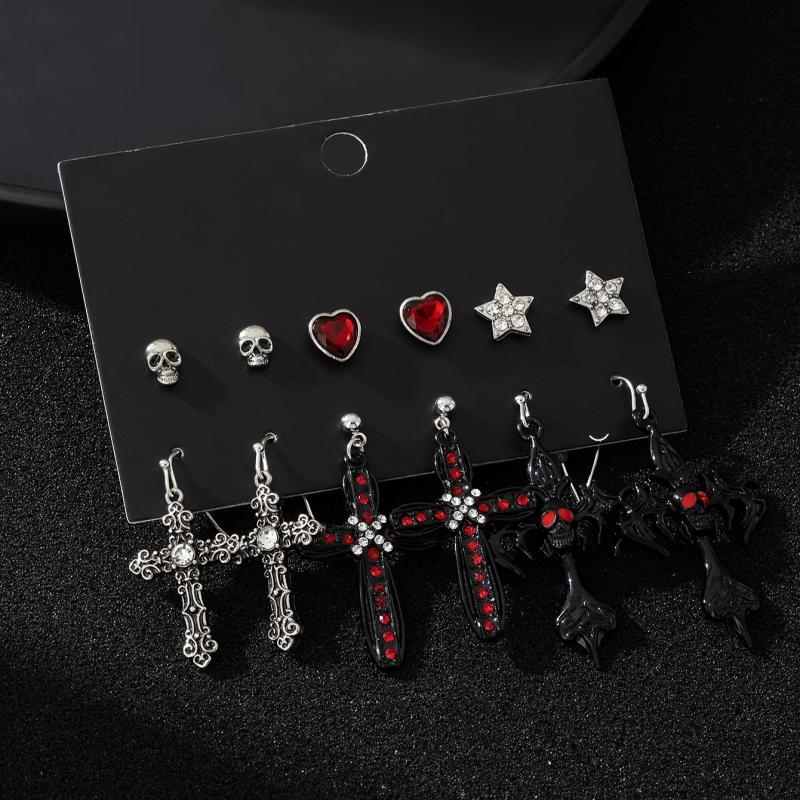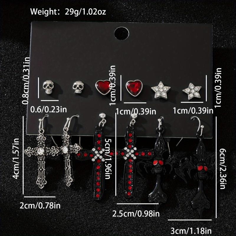 A stylish set featuring six gothic dark themed skulls with heart designs, sparkling five pointed star patterns and creative cross motifs. All with a high quality finish.