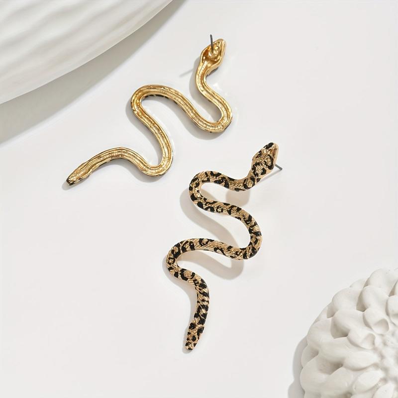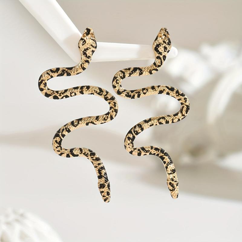 These golden plated earrings feature a unique combination of leopard print and snake design, perfect for adding a gothic touch to your Halloween party look.