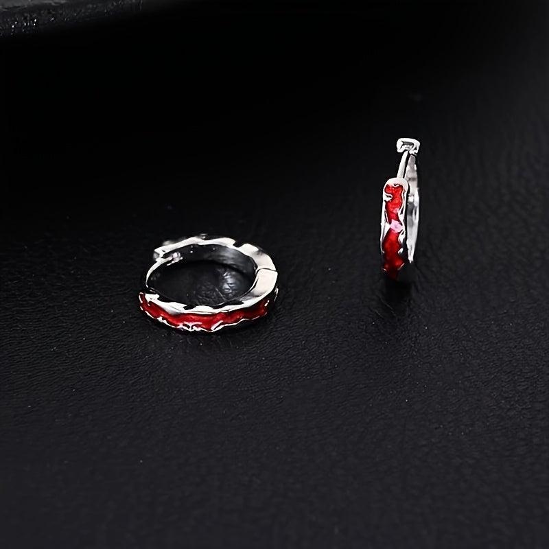 Make a bold statement with these gothic punk earrings. Featuring edgy cracked blood red K plated alloy with copper ear posts, they are perfect for parties and music festivals.