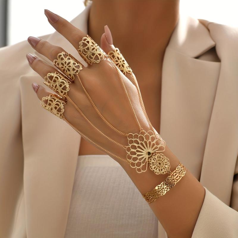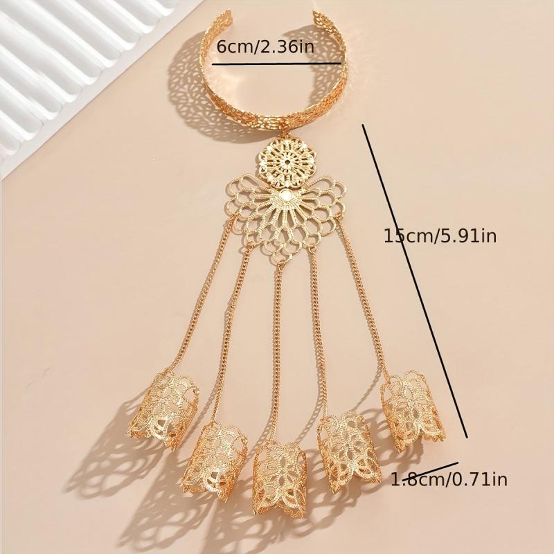 Embrace gothic punk style with this unique and exaggerated finger bracelet back chain. Make a statement wherever you go!
