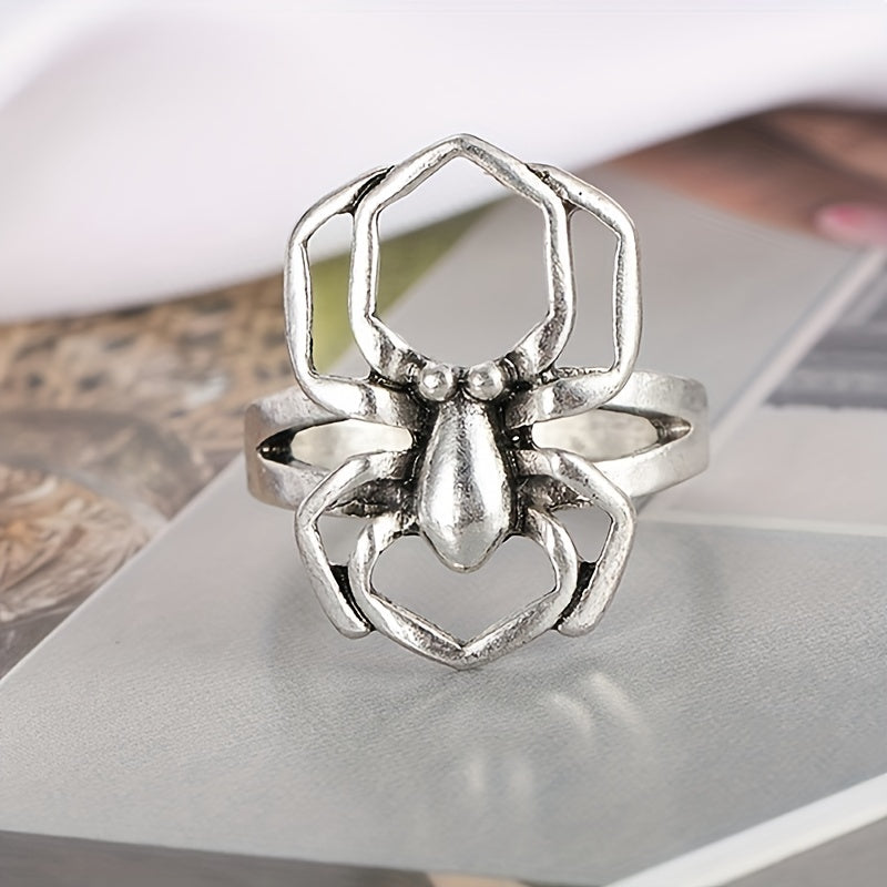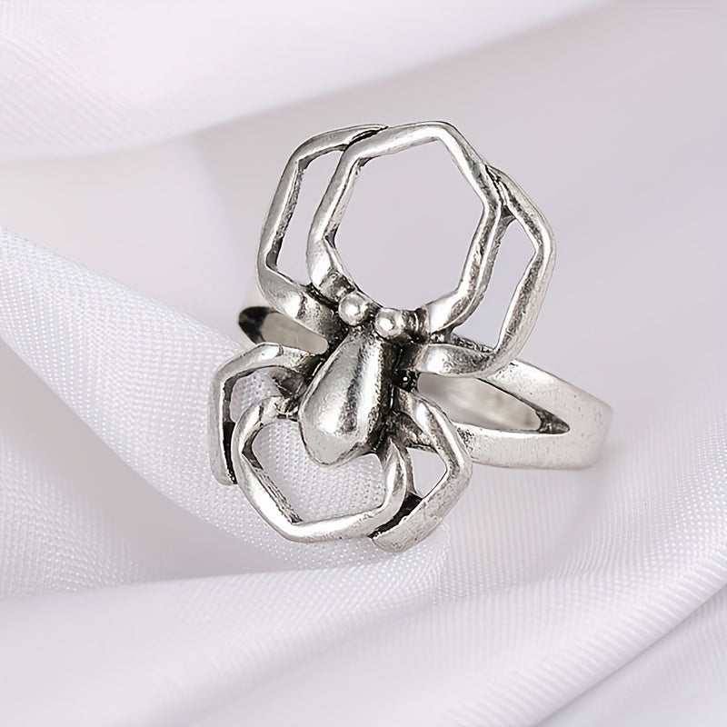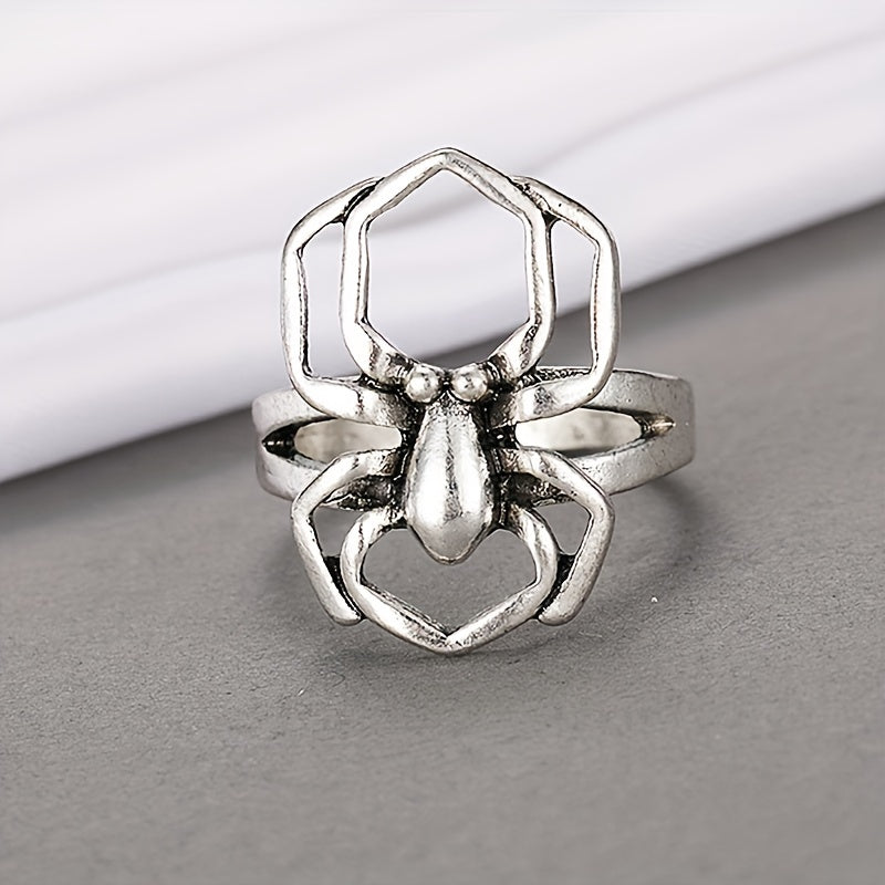 Make a bold statement with this silvery gothic punk spider ring designed for men. Embrace a unique and edgy style with this handsome accessory.