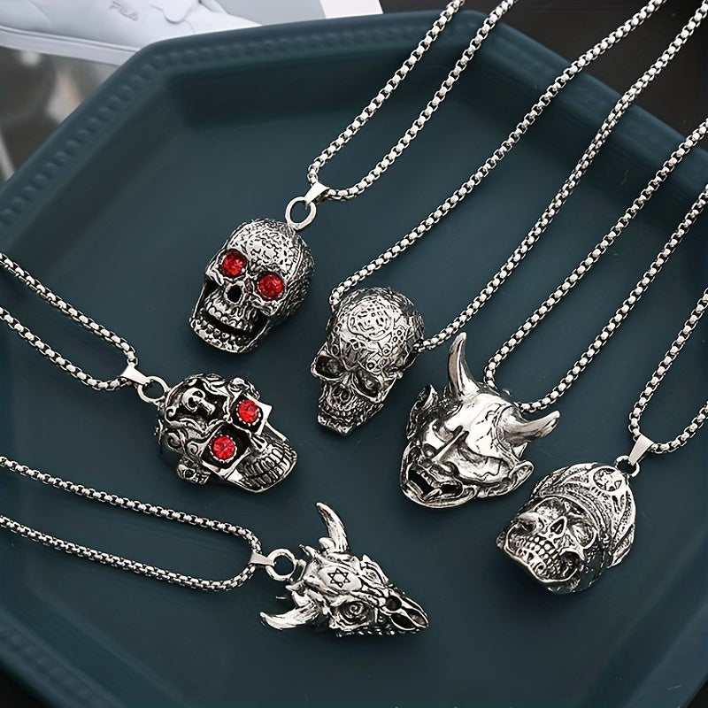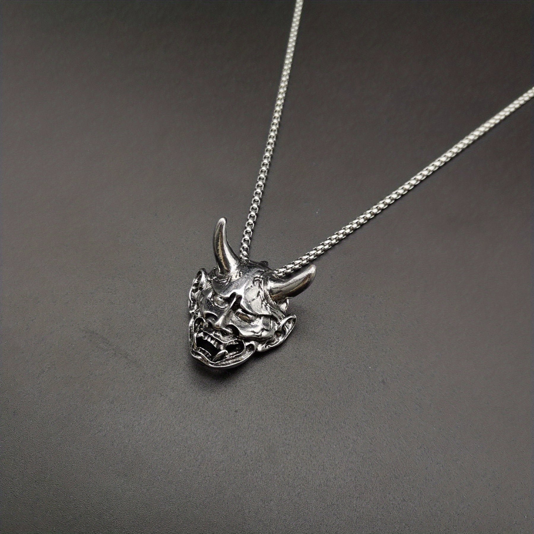 Embrace a vintage punk look with this funky skull devil pendant necklace. Perfect for men and women who love unique accessories.