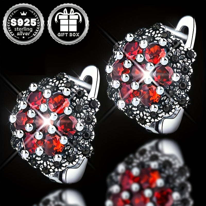 Add a touch of edgy elegance to your look with these Gothic Punk Style Spherical Earrings. Crafted from 925 Sterling Silver and adorned with Synthetic Cubic Zirconia in a striking red pomegranate hue, these earrings are perfect for daily wear or as a gift for any season.