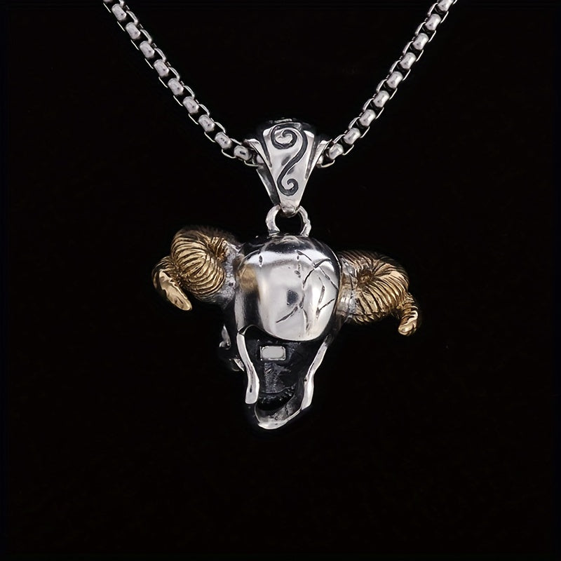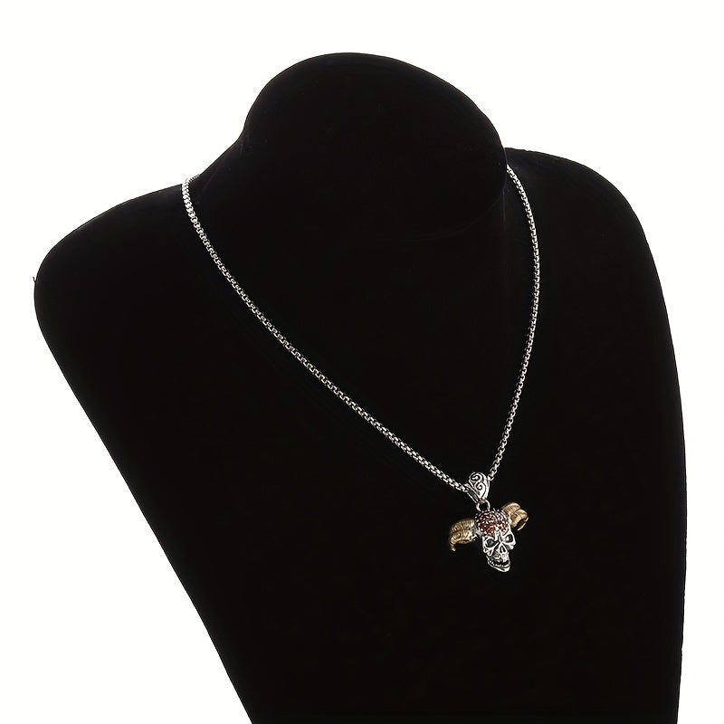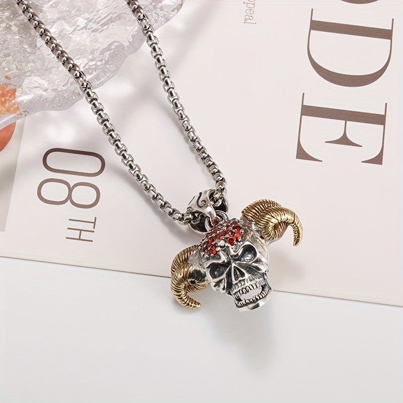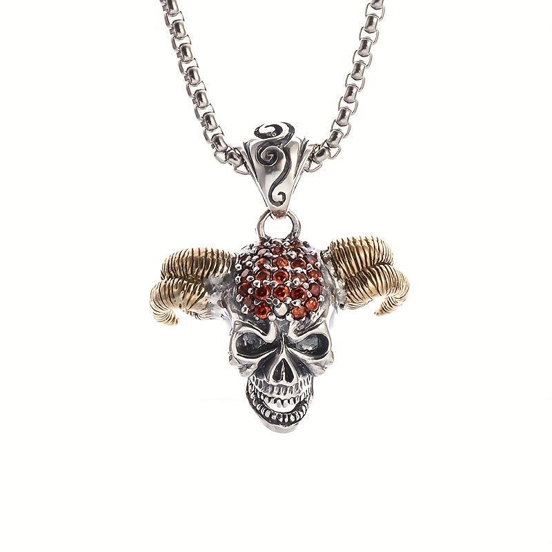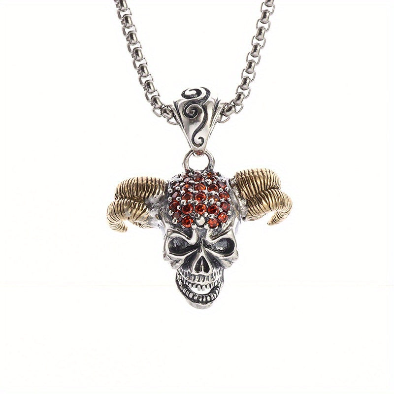 Make a bold statement with this gothic red zircon inlaid horn devil head pendant necklace. Perfect for casual, street, or party wear.