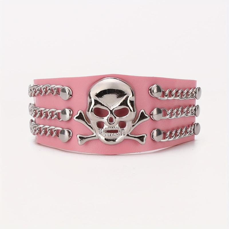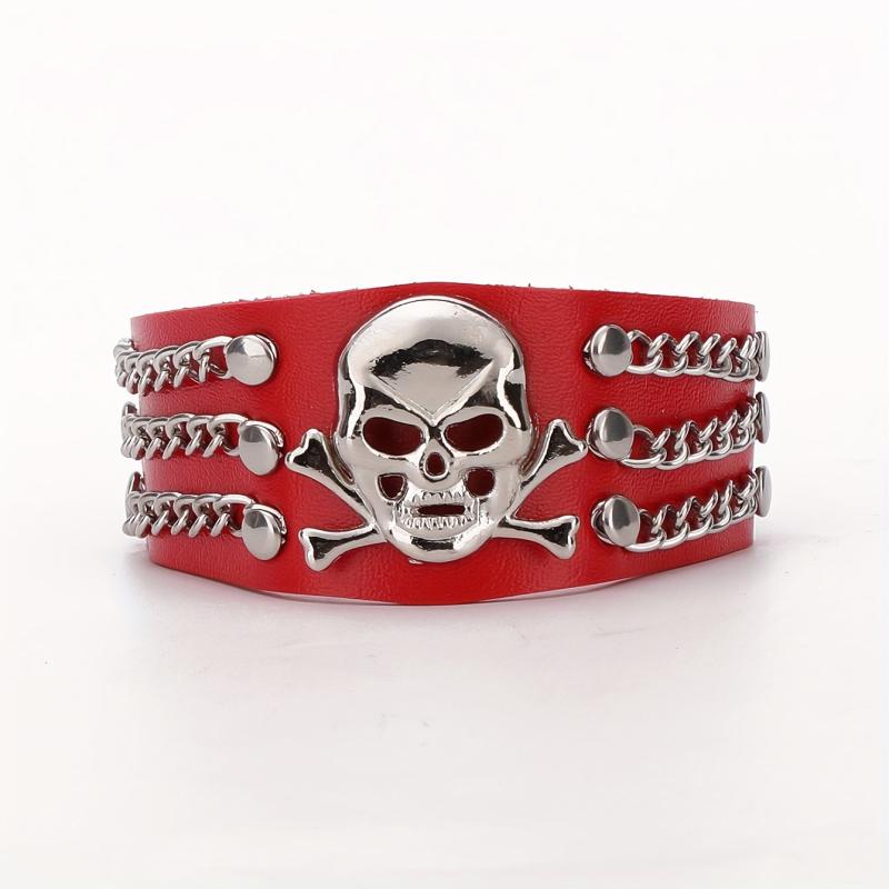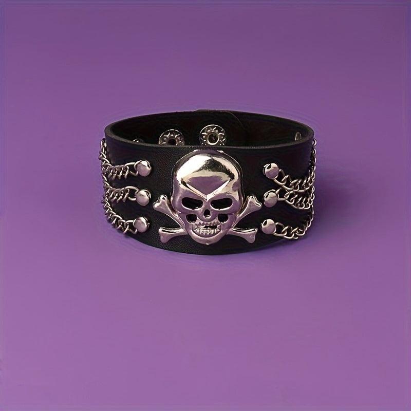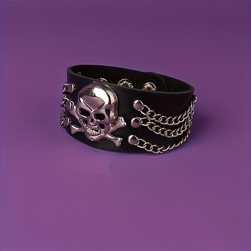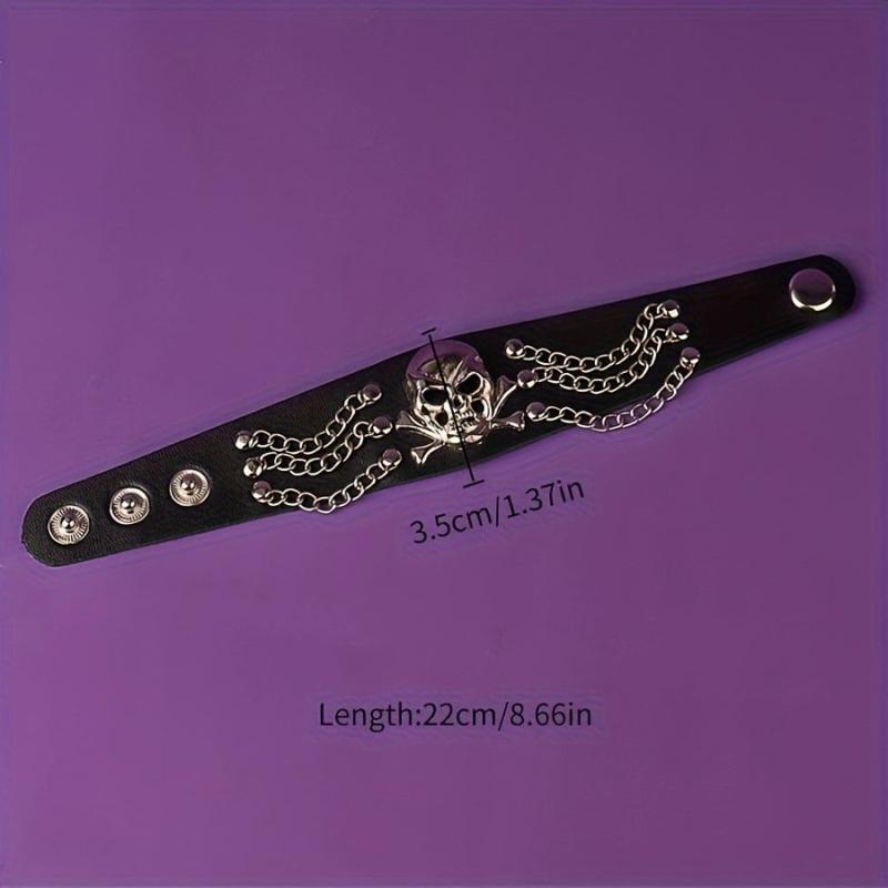This skull chain bracelet is a perfect accessory for both men and women in nightclubs or parties. Made from high-quality PU leather with a vintage punk style.
