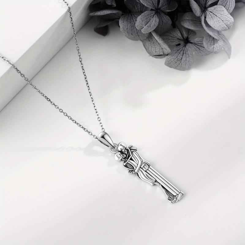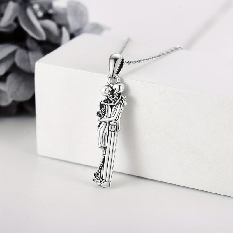 This Gothic Love Style Embrace Necklace features a skull pendant design suitable for both men and women. Made of 925 sterling silver, this unique necklace is a perfect gift for gothic enthusiasts.
