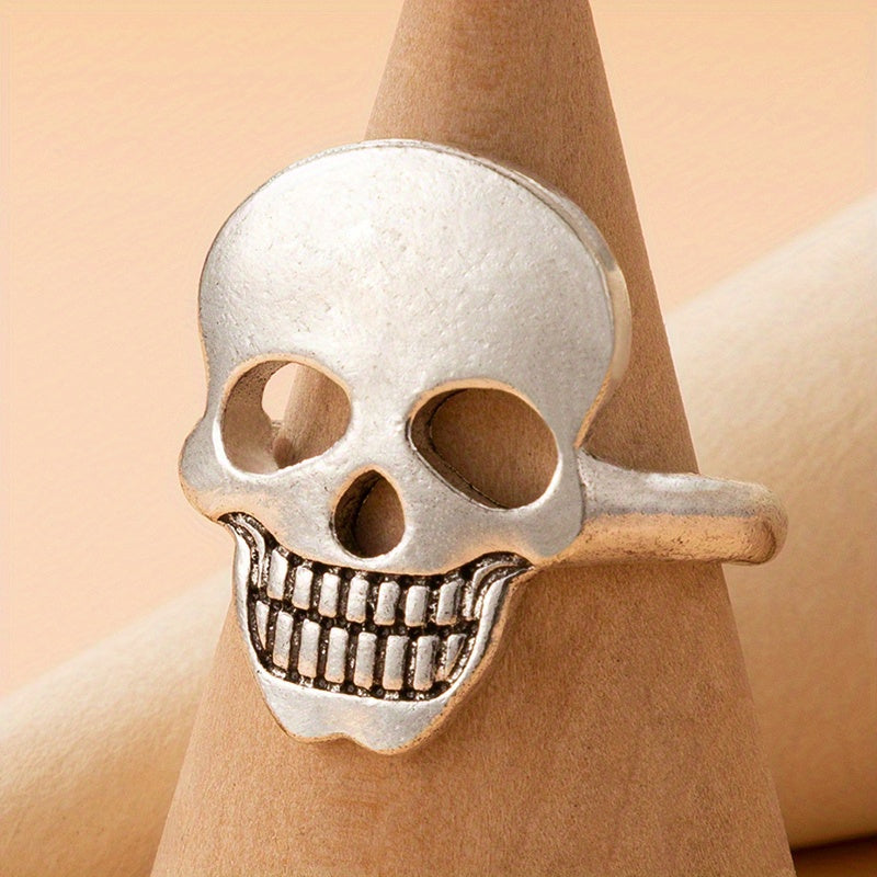 This Gothic Skull Head Ring featuring a scared smiling skull is the perfect Halloween decor for friends. Suitable for men and women to match daily outfits.