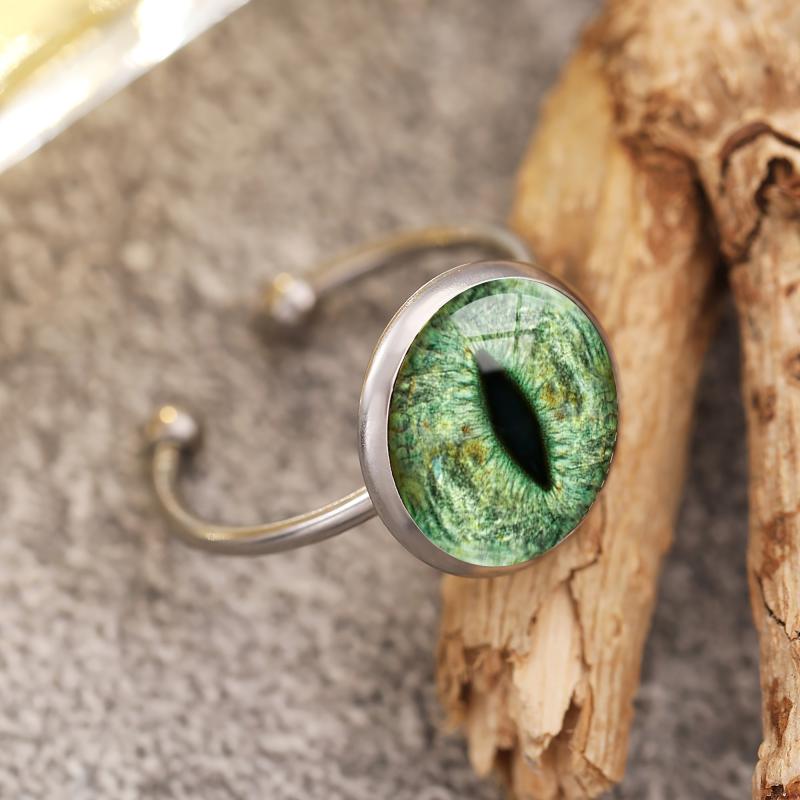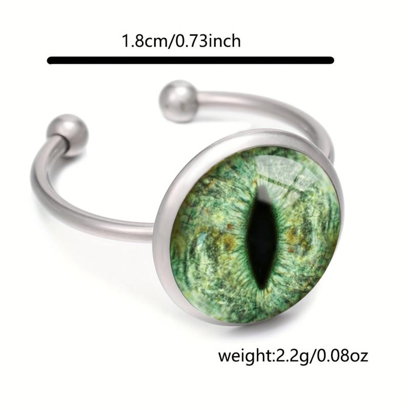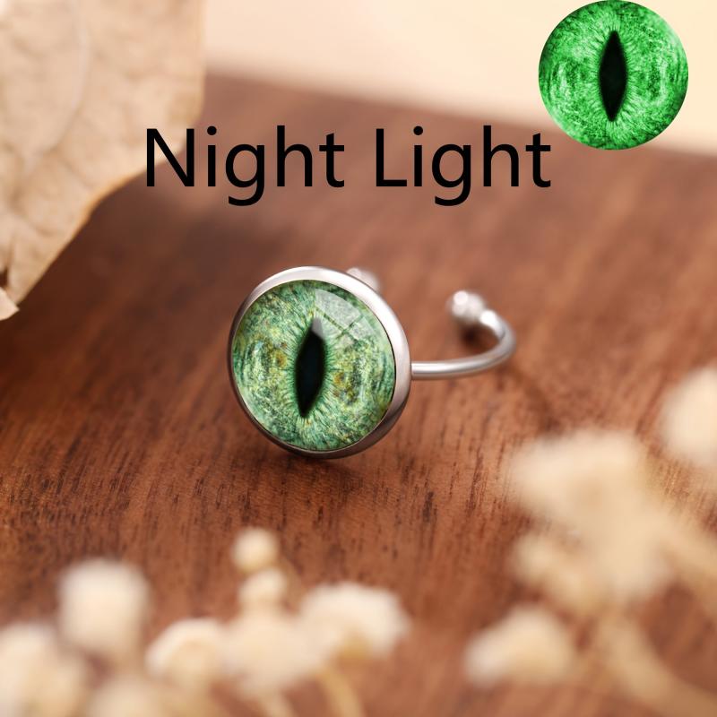 This adjustable ring features a lizard eye design with a glow in the dark green glass inlay. Made of durable 304 stainless steel, it is suitable for all season wear and is ideal for those born in April.