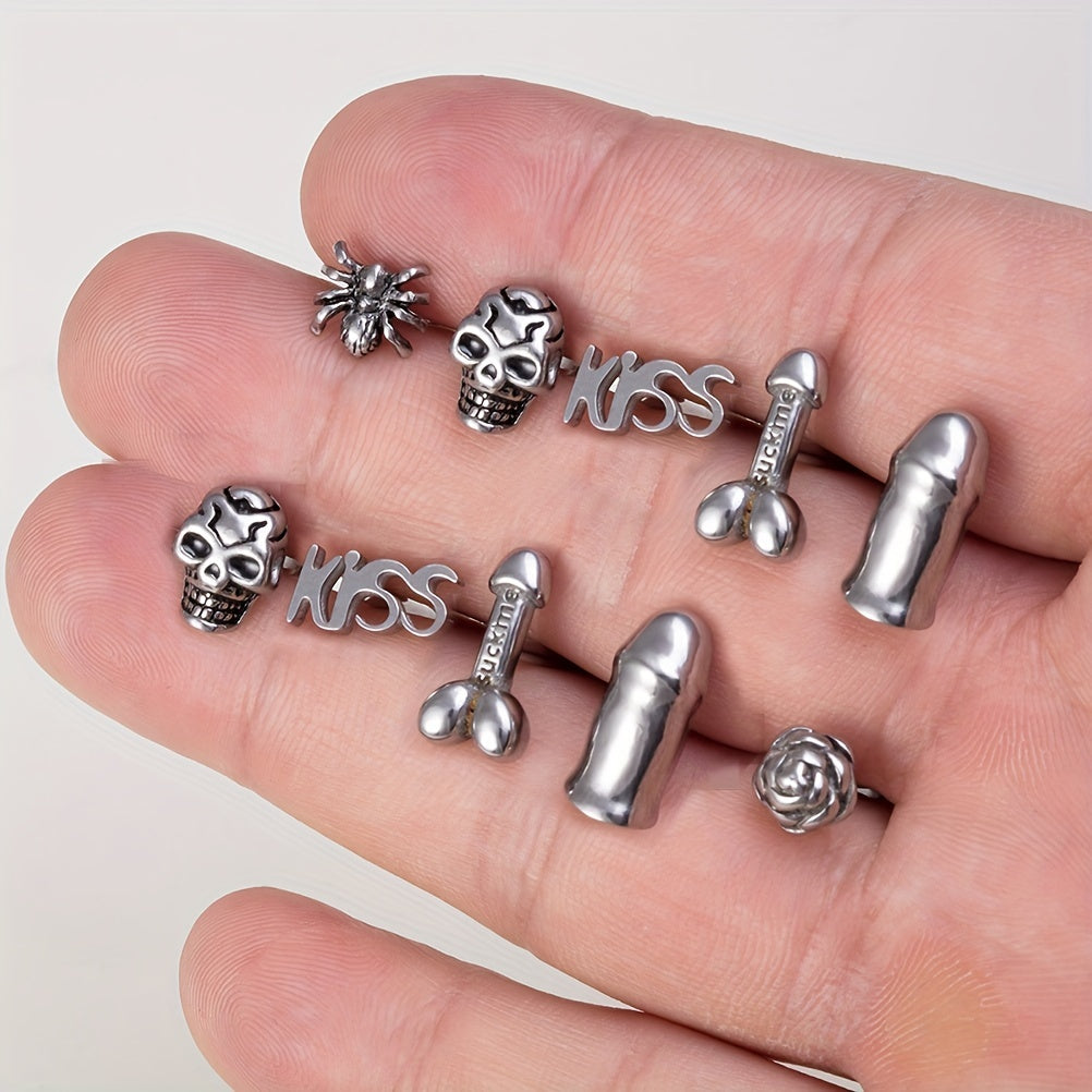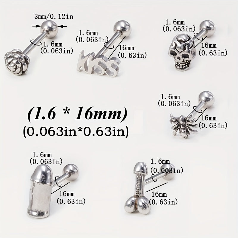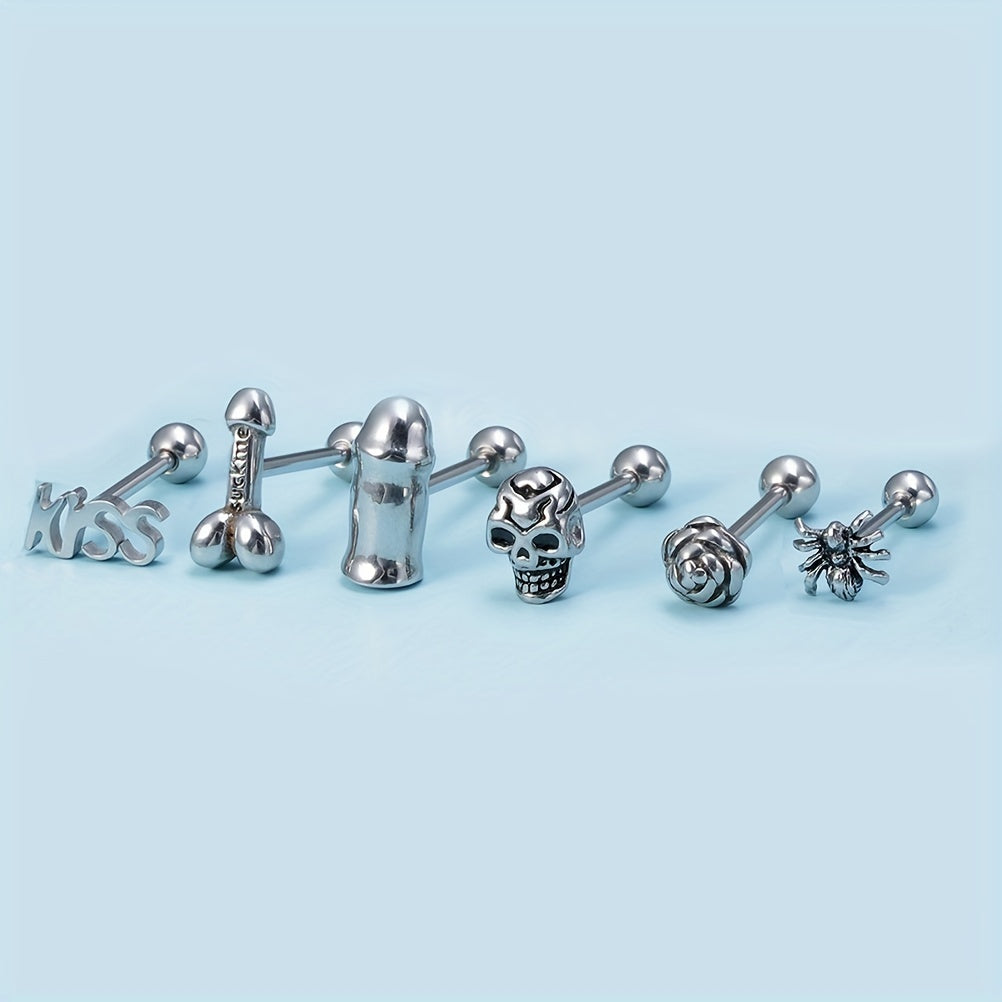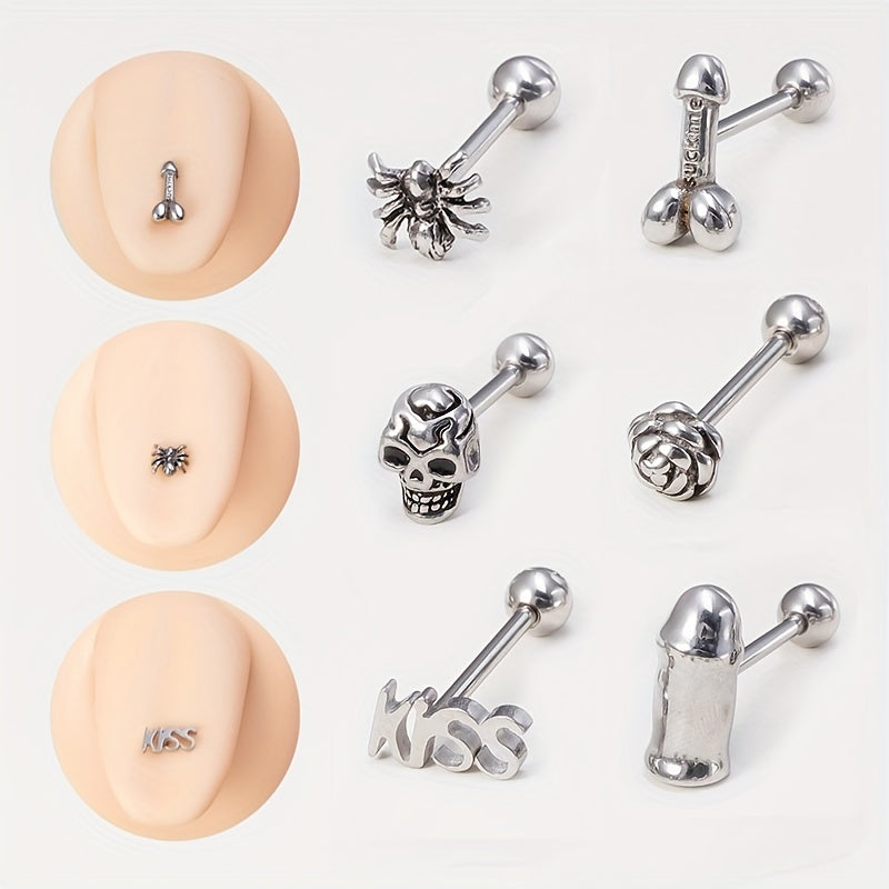 Elevate your style with this punk-inspired tongue ring featuring various shapes like skulls and spiders. Unisex and made of high-quality stainless steel.