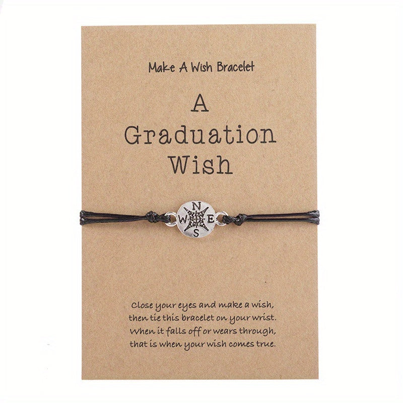 Celebrate the special occasion with this stylish string bracelet featuring a compass-shaped pendant. Perfect gift for the graduation season.
