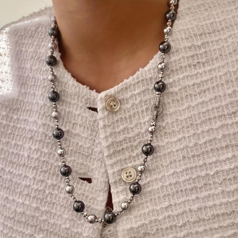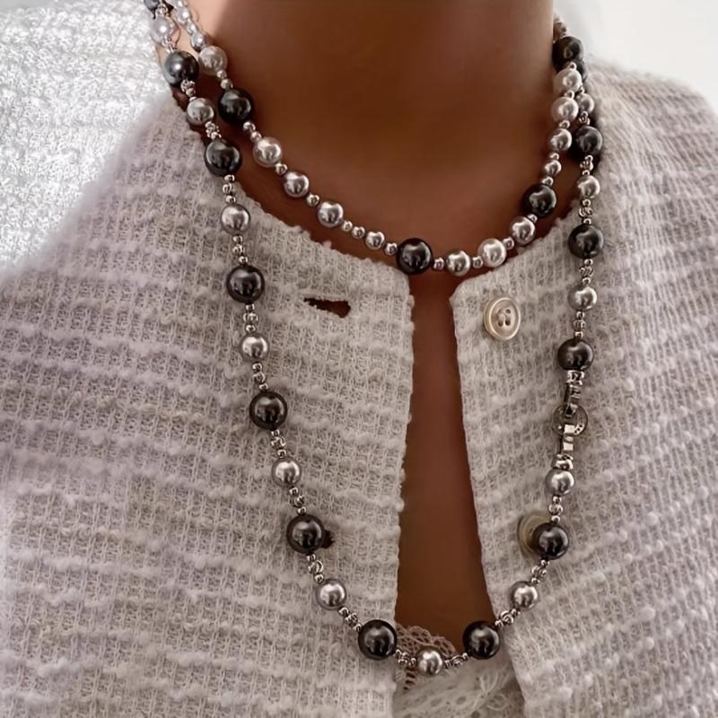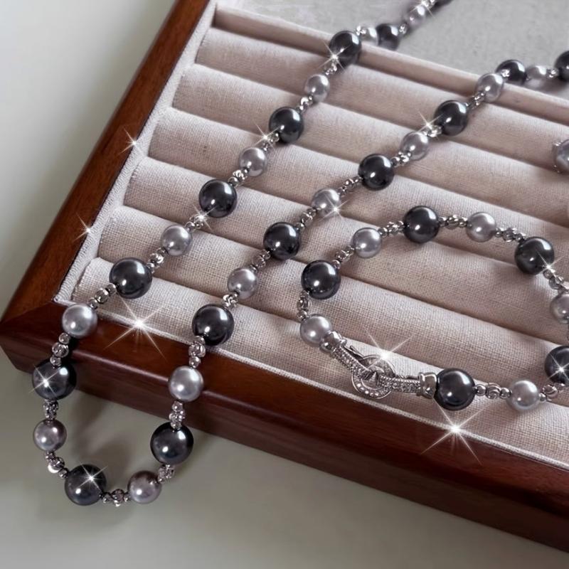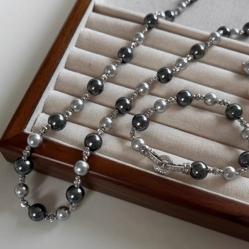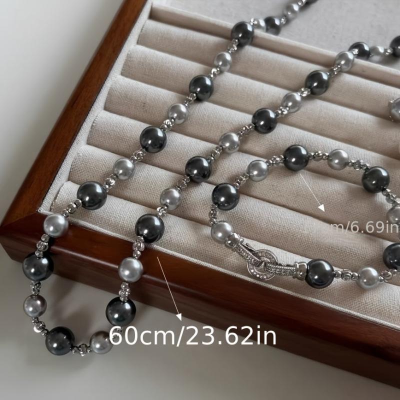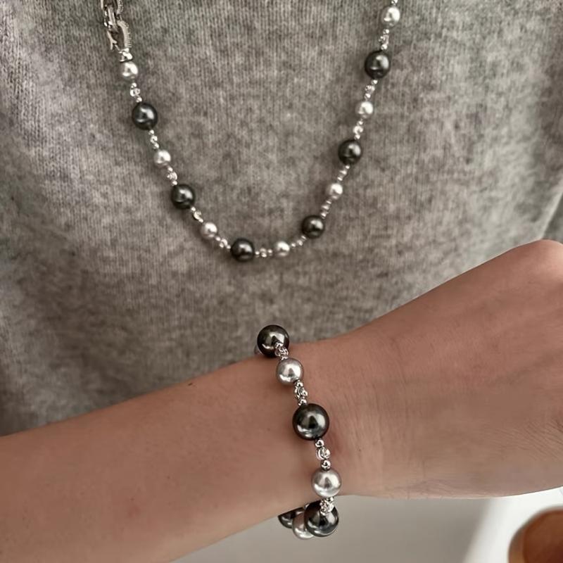 Elegant two-piece jewelry set featuring long pearl necklace and bracelet. Perfect for autumn and winter occasions. Ideal gift for weddings.