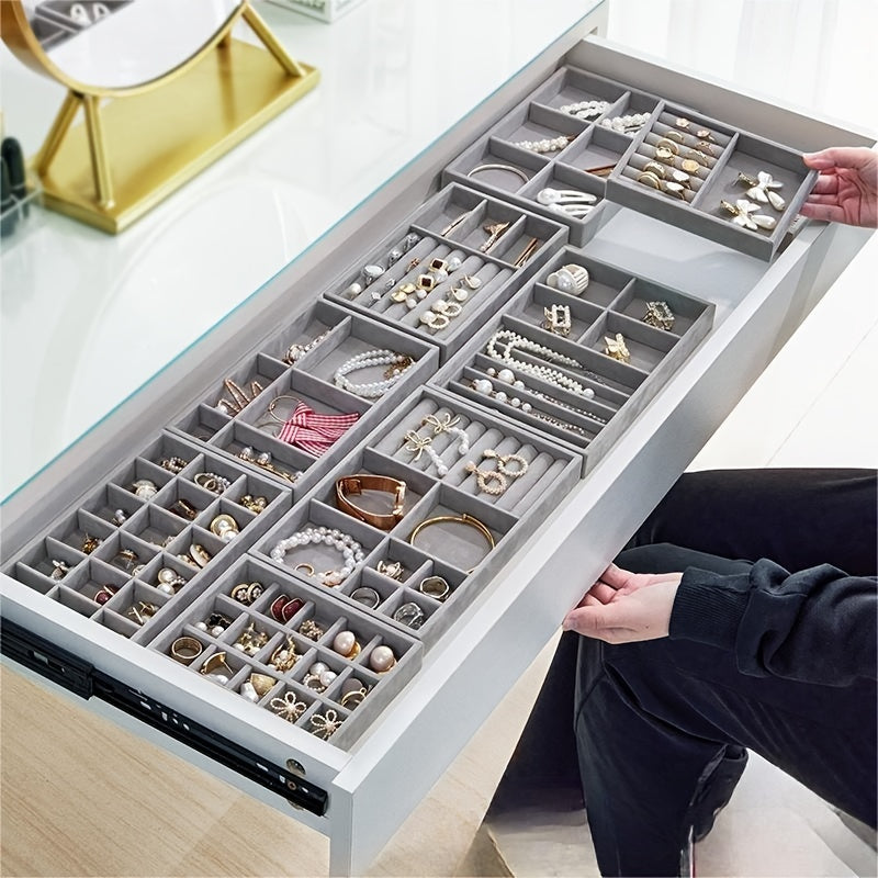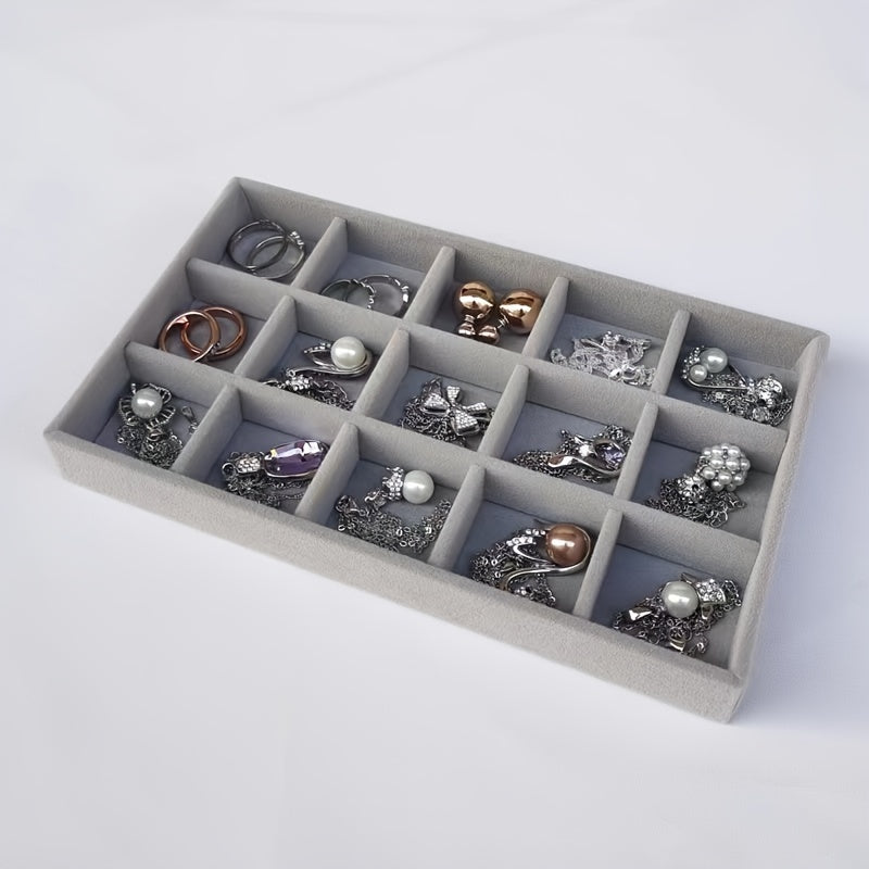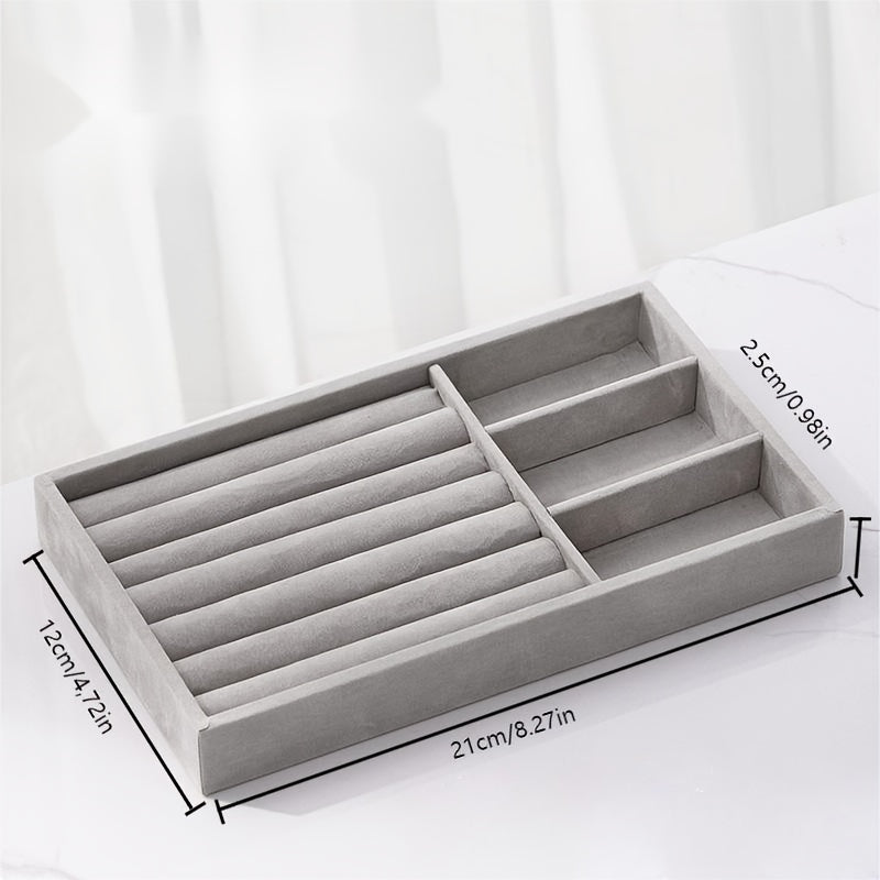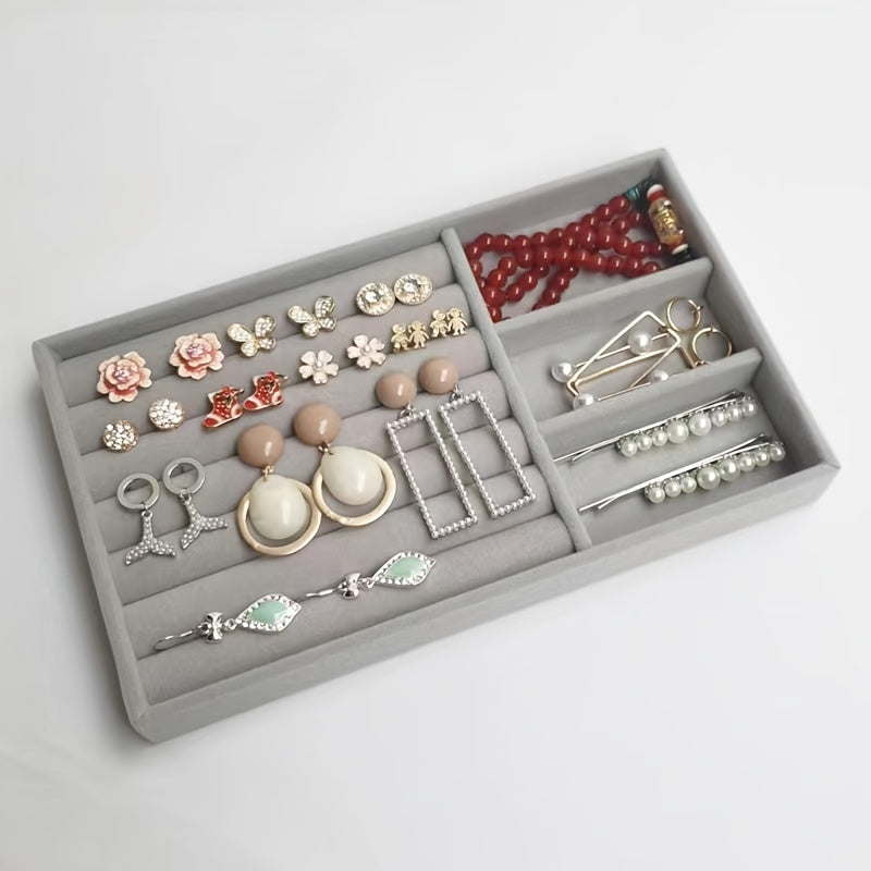 Keep your earrings and rings organized with this elegant velvet display plate. Perfect for showcasing your jewelry collection.