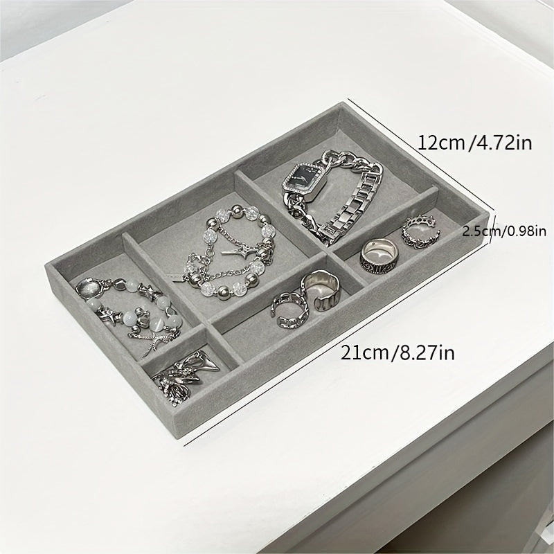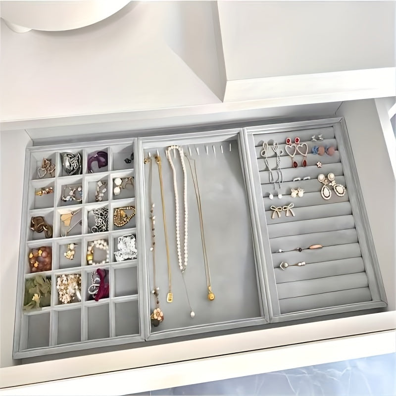 Organize and display your jewelry with this elegant gray velvet tray. The dust-proof storage drawer keeps your earrings and other items safe and secure.