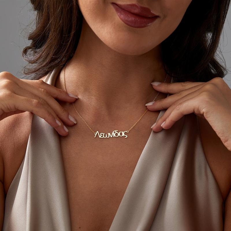 This custom Greek name necklace is made of high-quality 18K golden plated stainless steel. It is a perfect gift for her and can be worn all year round in an ethnic style.