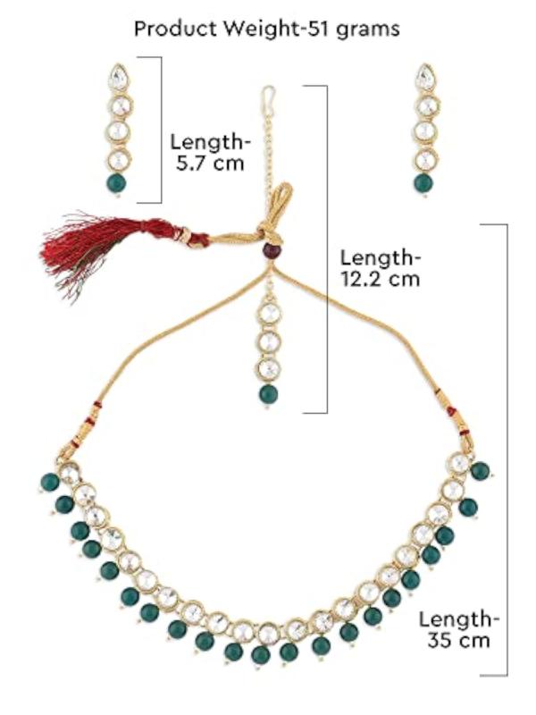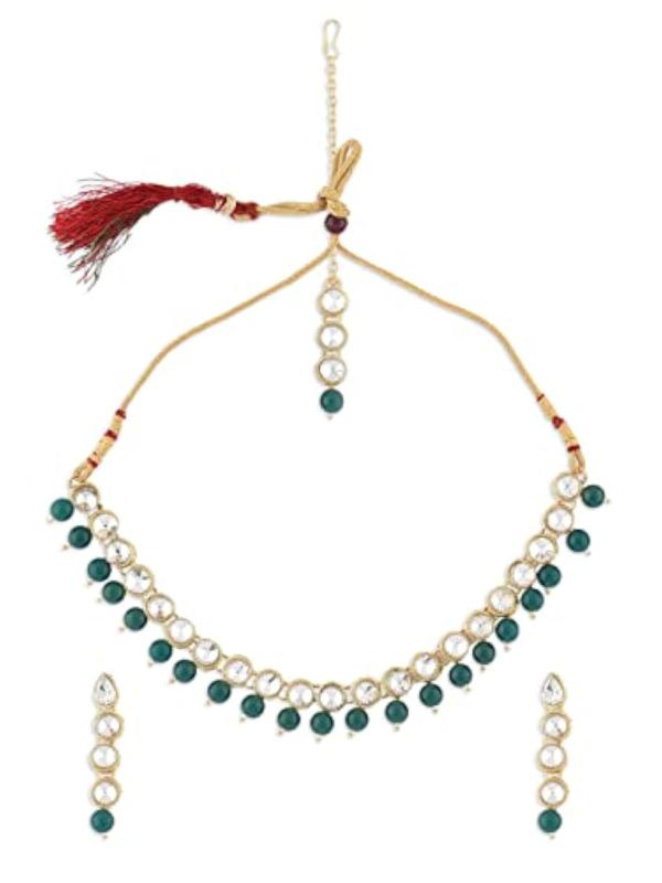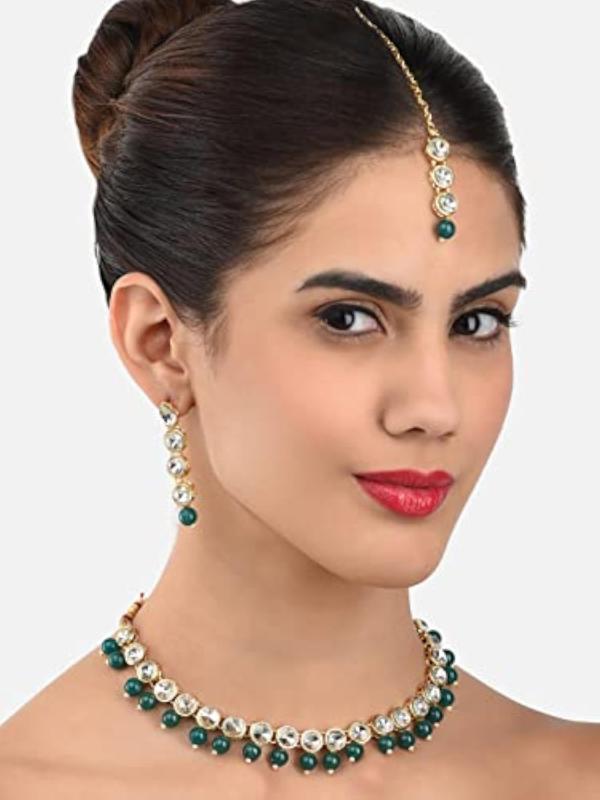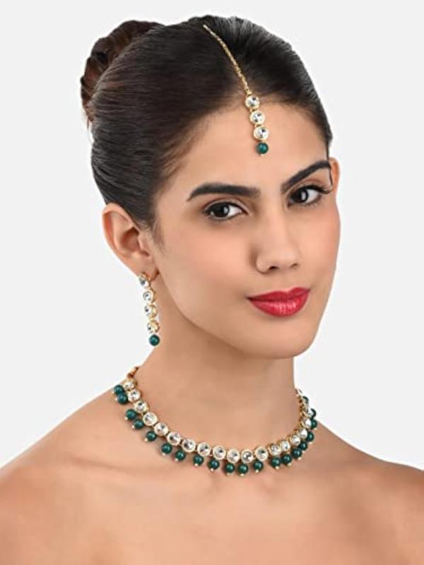 This traditional choker necklace set features beautiful green beads with drop design. Perfect for women who love elegant jewelry.