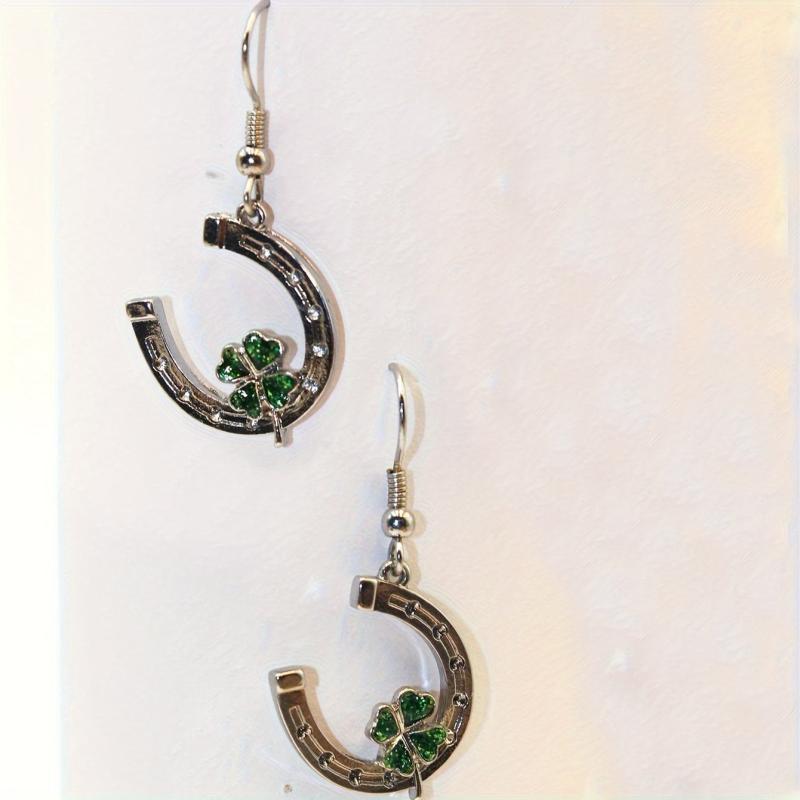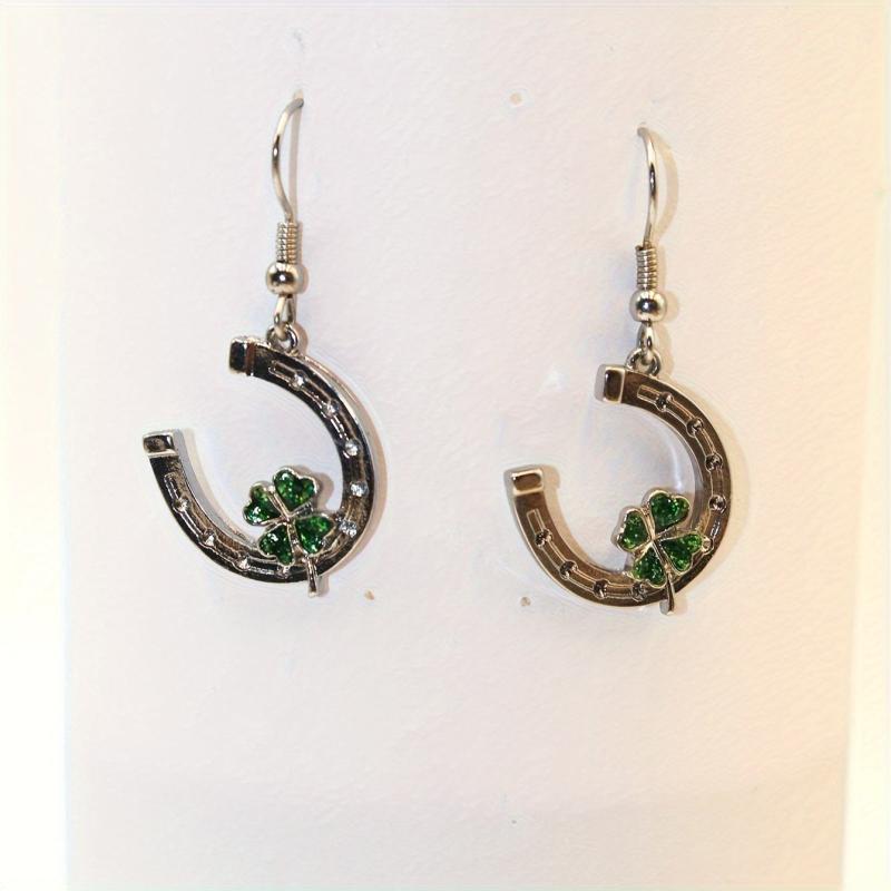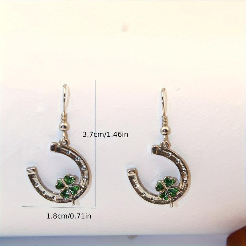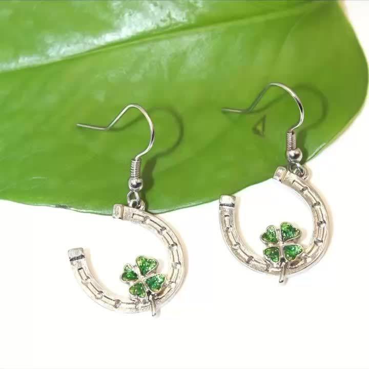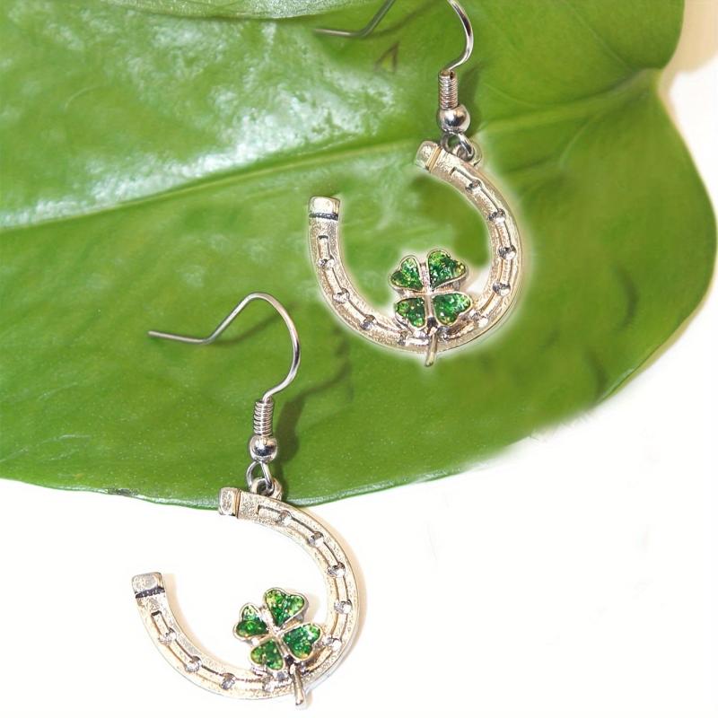 Add a touch of luck to your outfit with these green clover dangle earrings. Perfect for St. Patrick's Day celebrations or everyday wear.