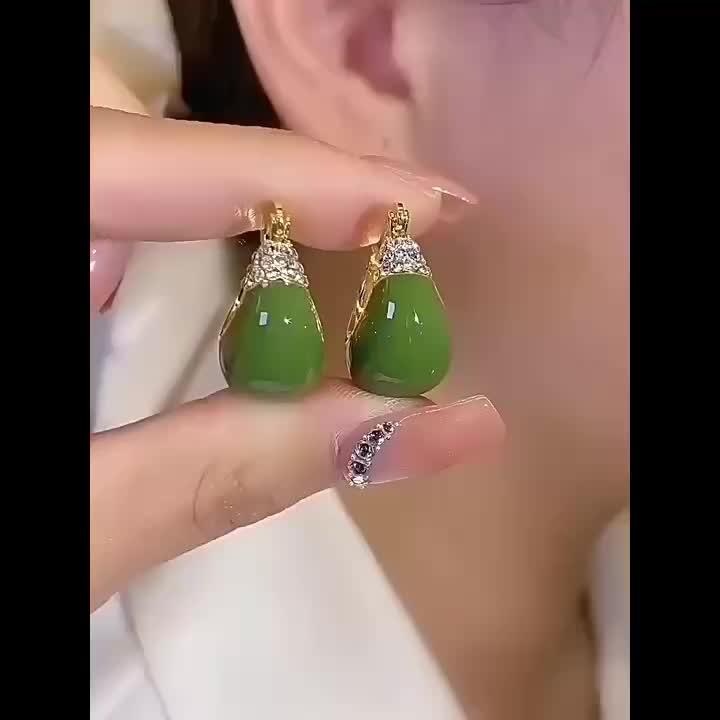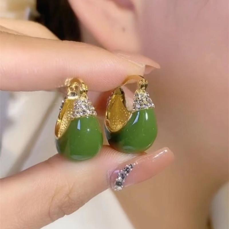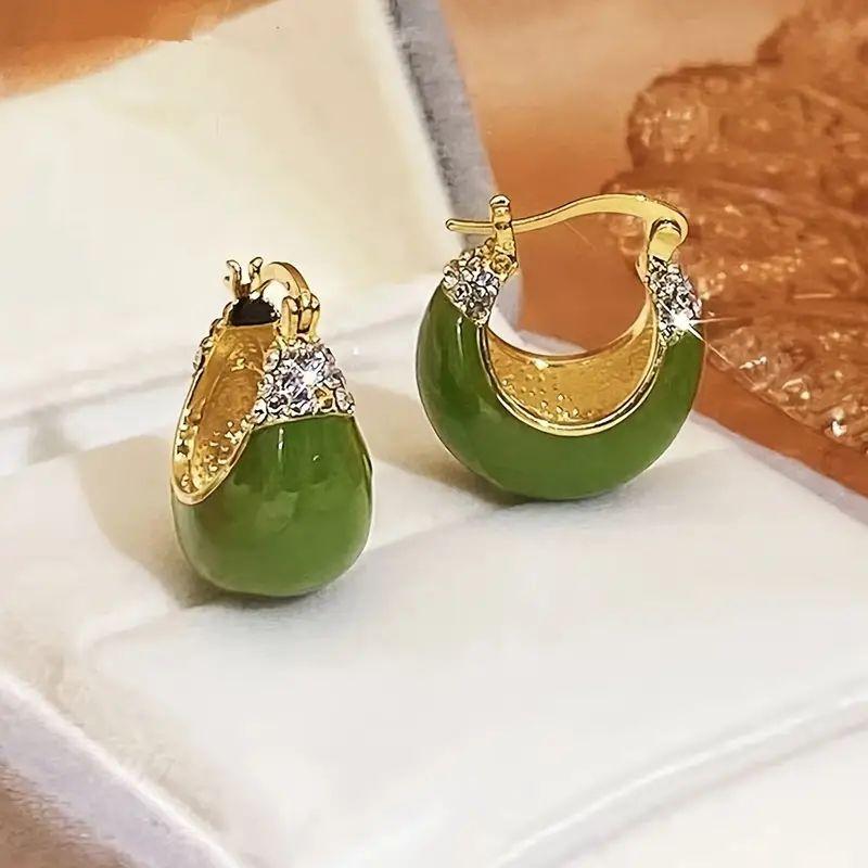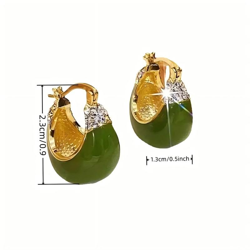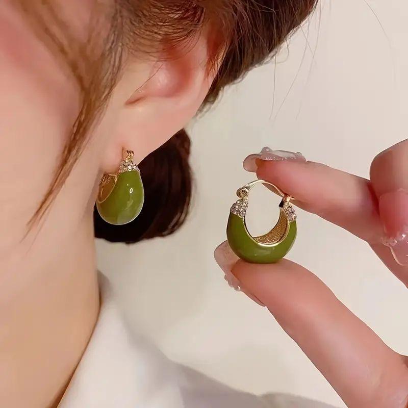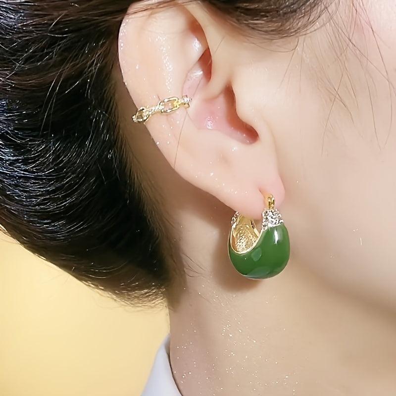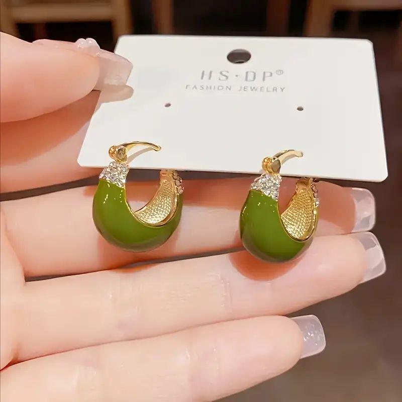 Green Crystal C-shaped Earrings Inlaid Accessory for Women