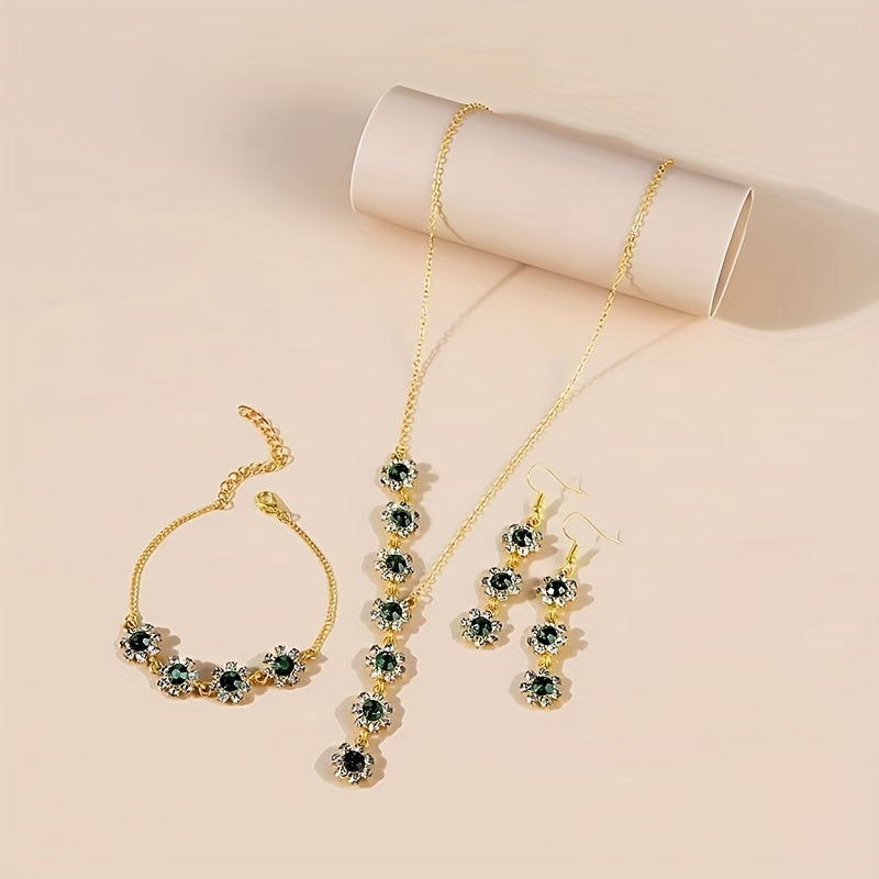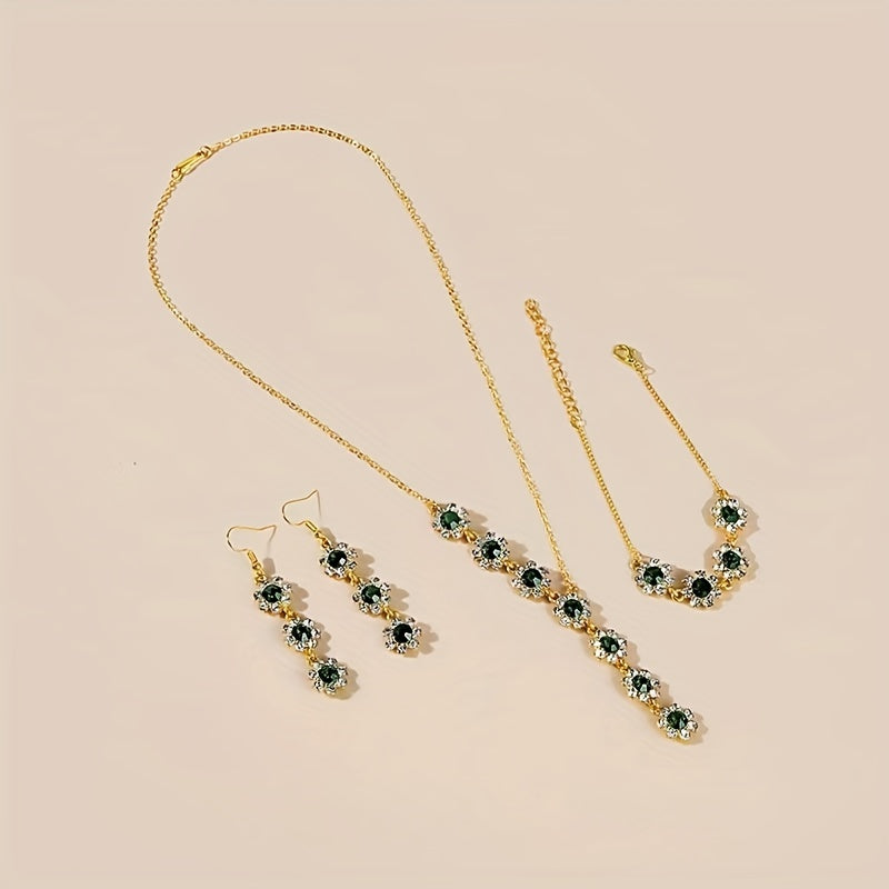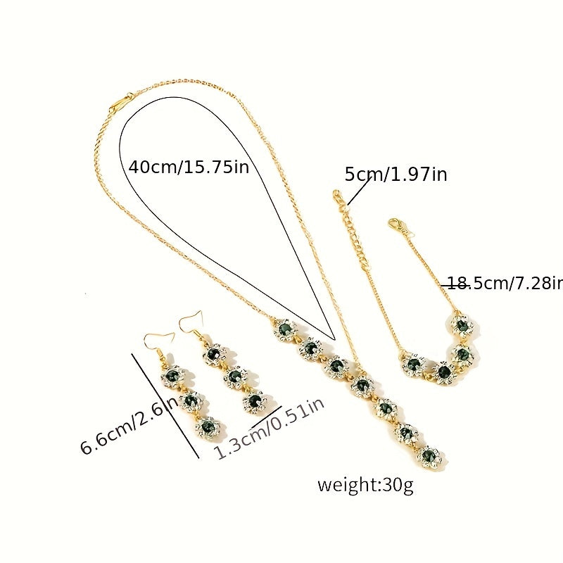 Complete your look with this beautiful set featuring artificial crystal flower designs in a stunning green color. Perfect for adding a touch of elegance to any outfit.