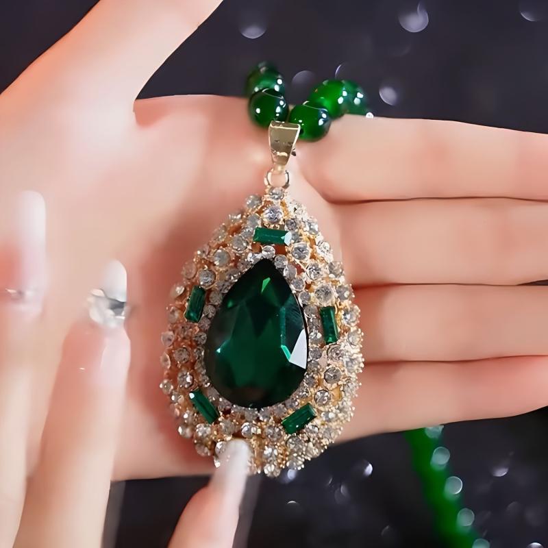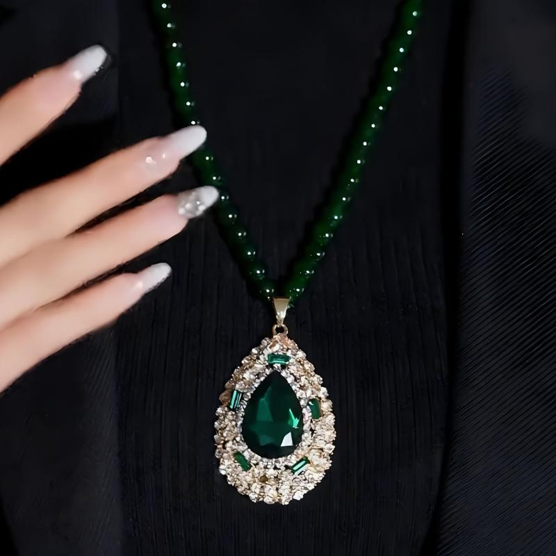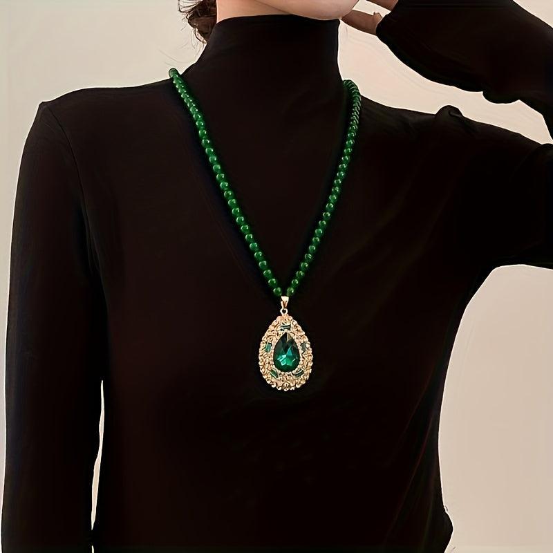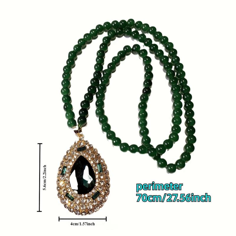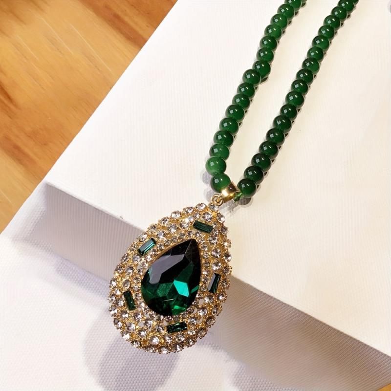 Add a touch of sparkle to your outfit with this green crystal pendant necklace. Perfect for parties or daily wear, this necklace features dazzling rhinestones that catch the light beautifully.