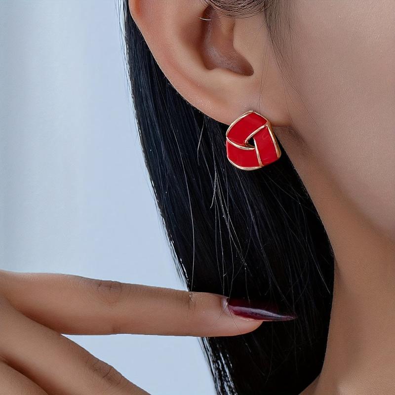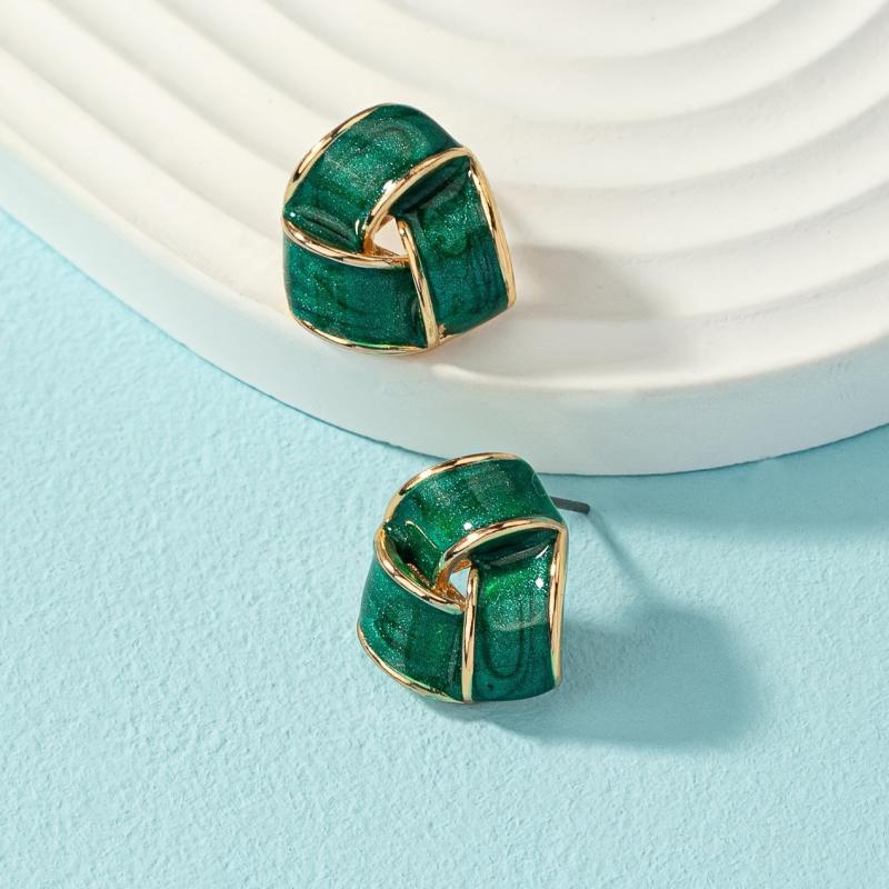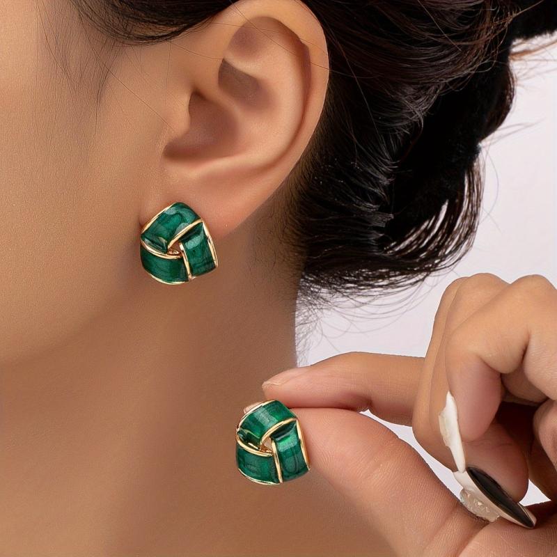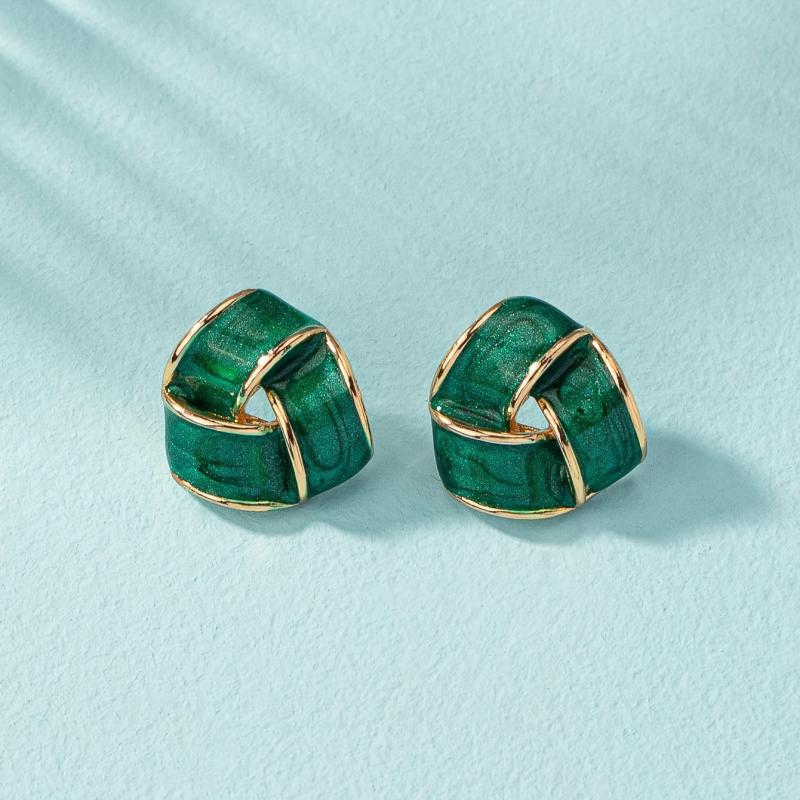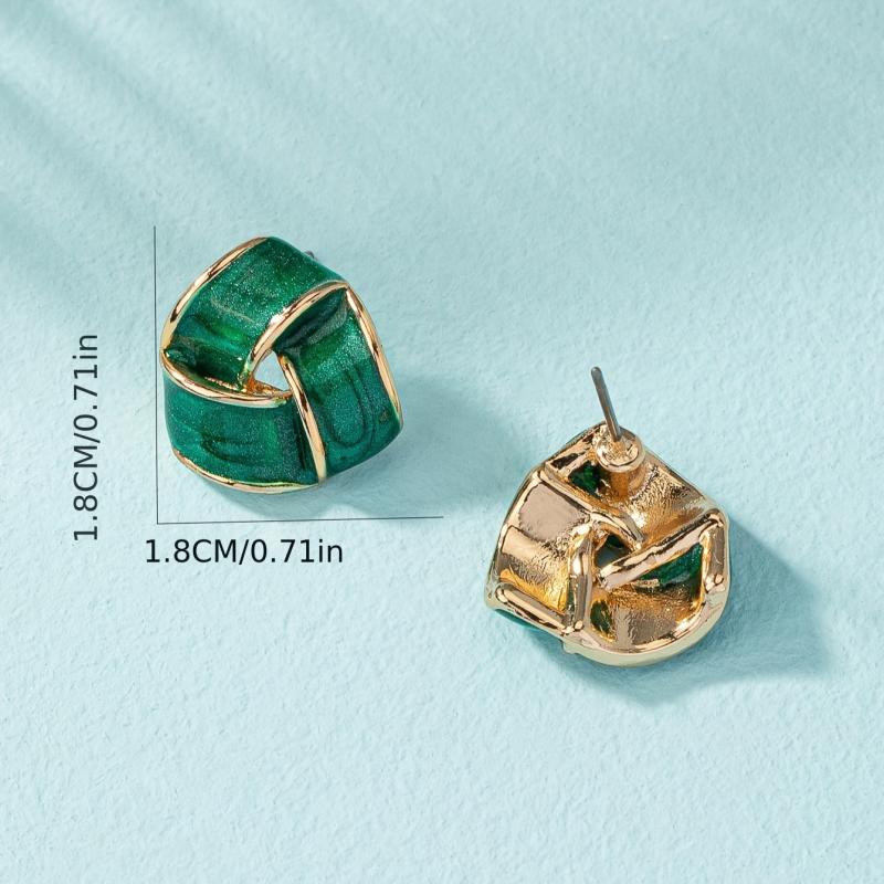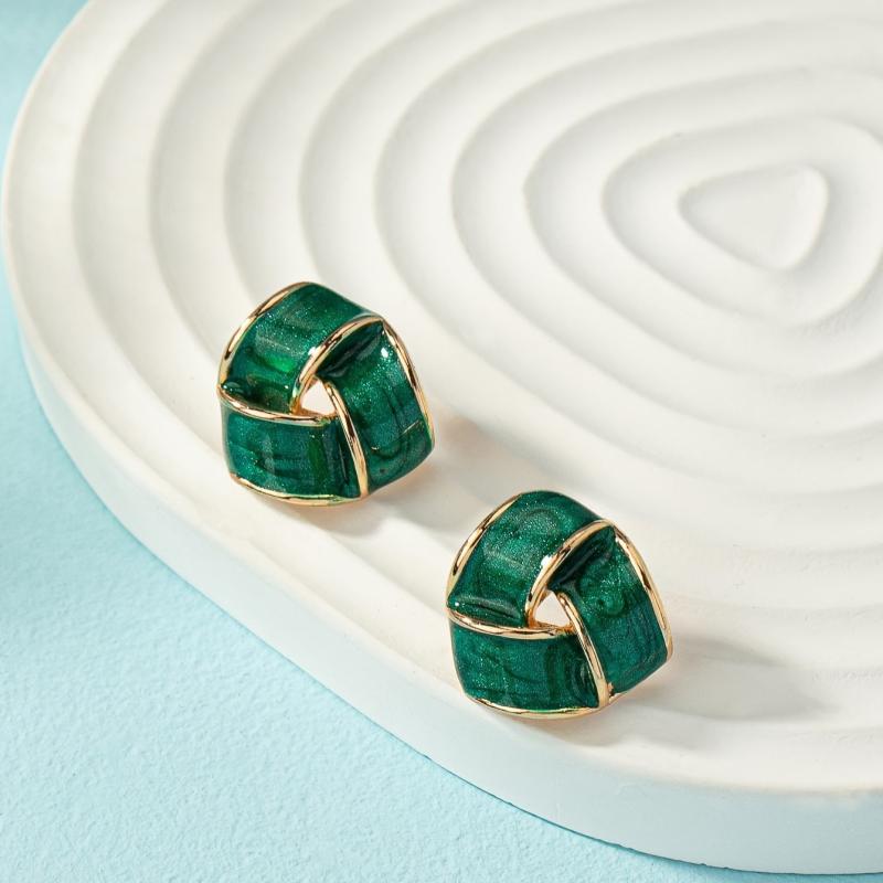 Add a touch of bohemian charm to your summer look with these unique green enamel triangle stud earrings. Perfect for dating or a day out!