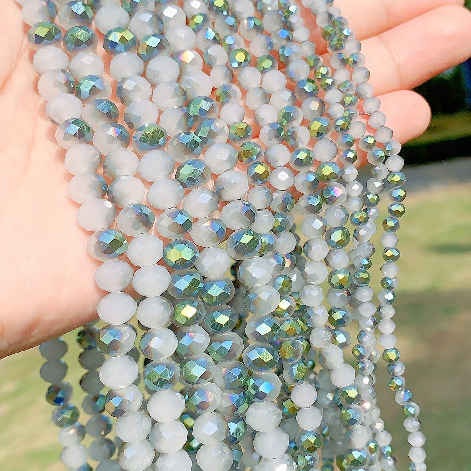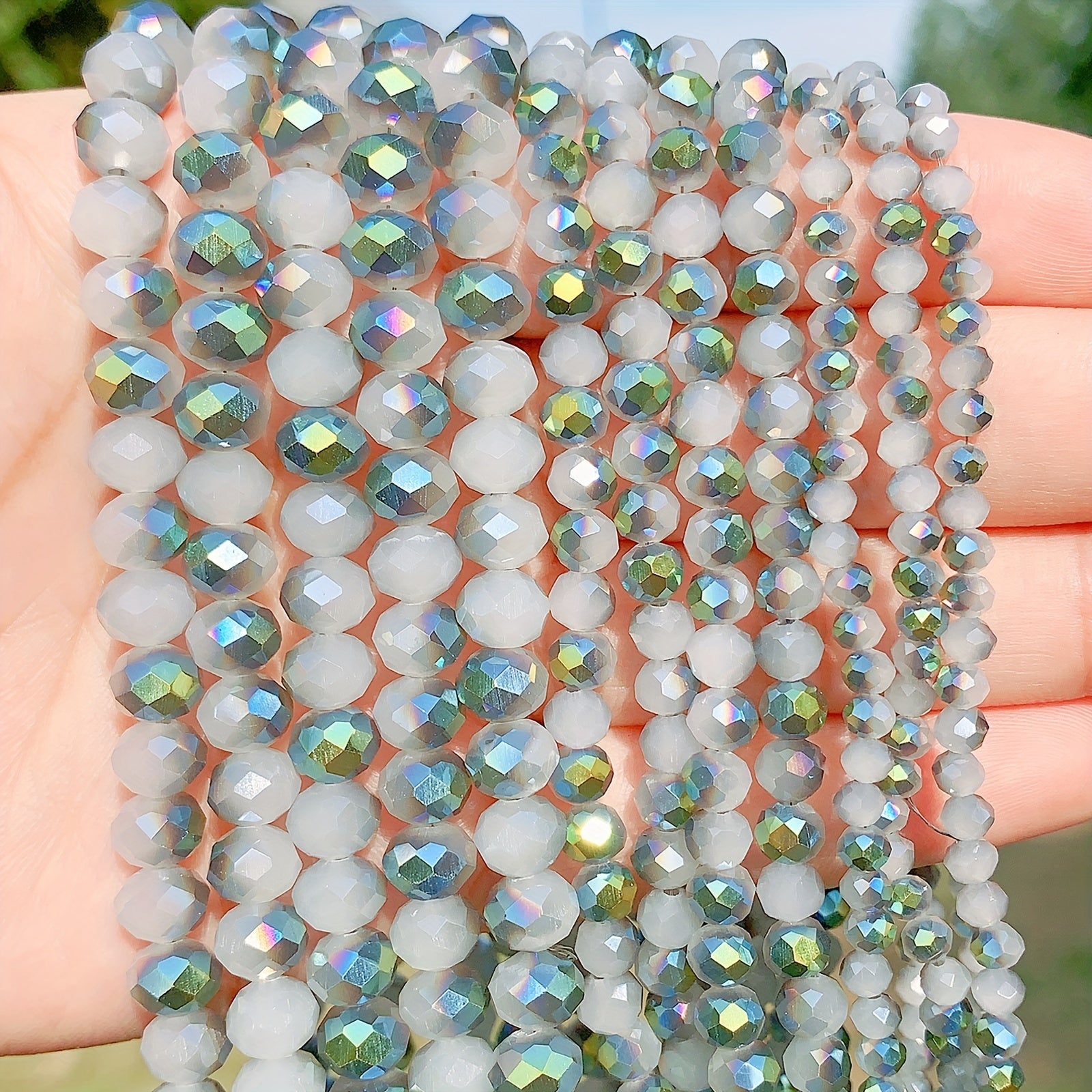 Create stunning jewelry pieces with these green faceted opaque glass beads. Perfect for bracelets, keychains, necklaces, and more!