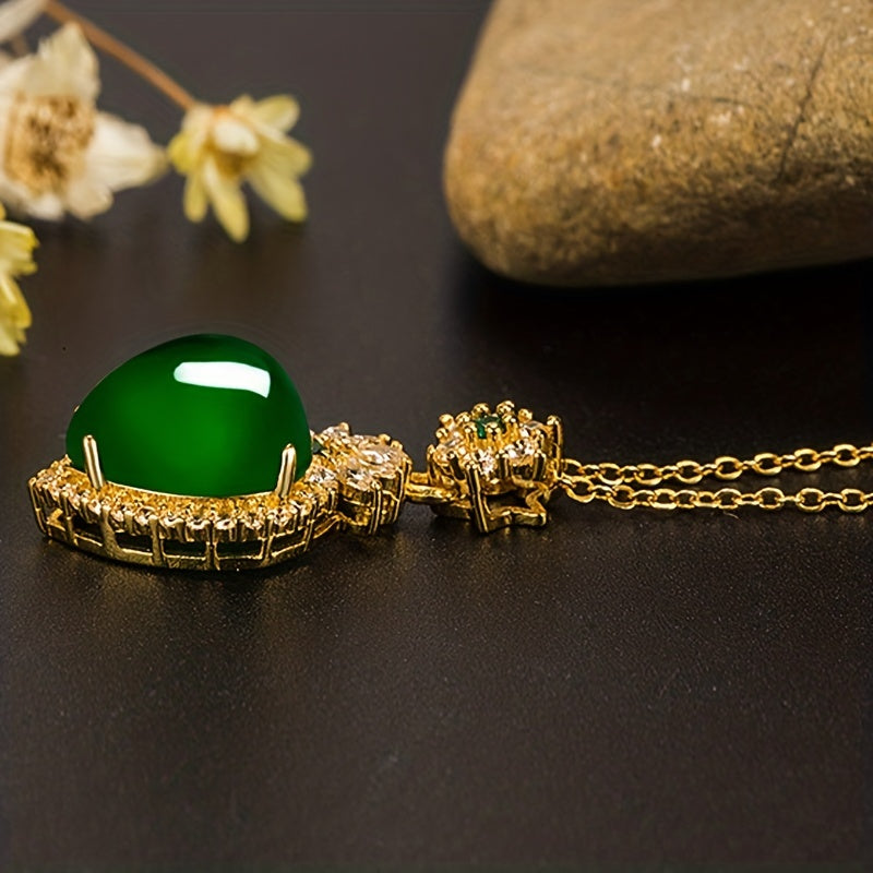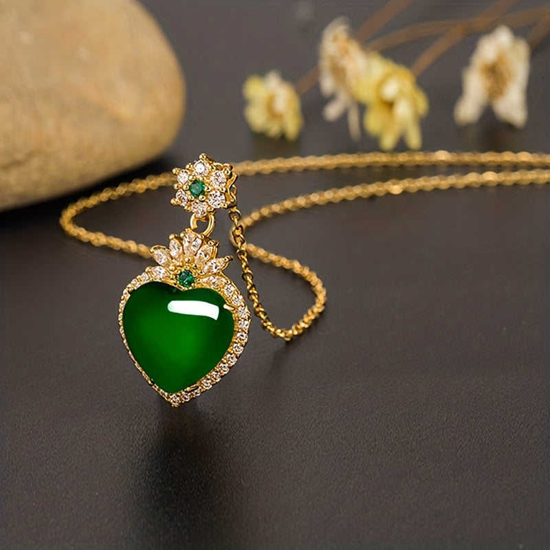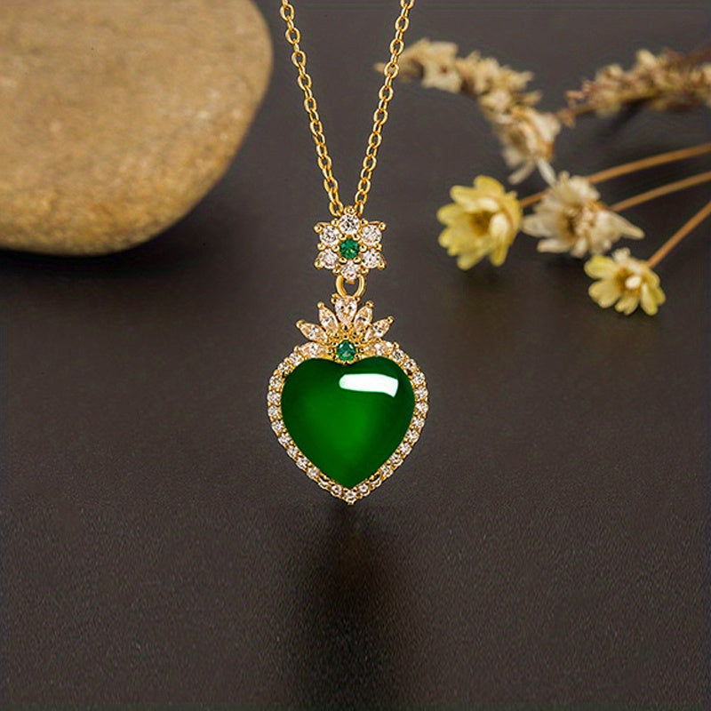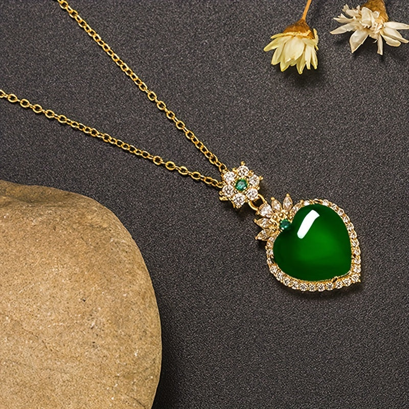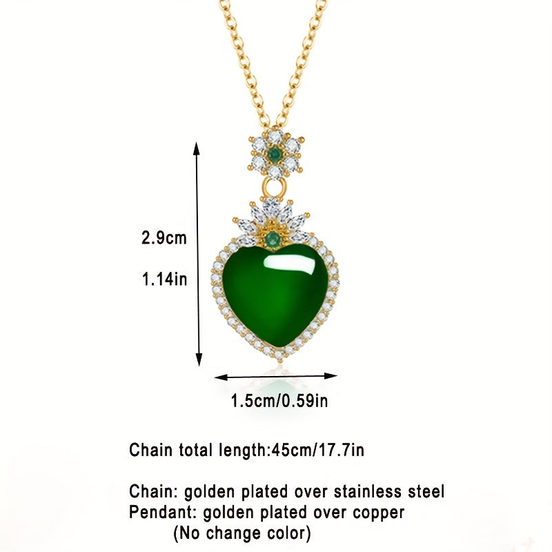 This stunning necklace features a love heart jade green crystal zircon flower pendant. It is plated with 18K gold, making it a perfect gift for women and girls.
