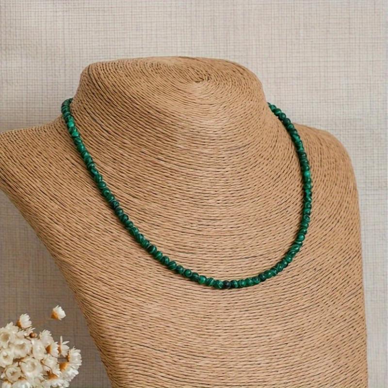 This 4mm round natural stone choker necklace is ideal for daily wear, featuring a vintage boho style. Versatile accessory that enhances any outfit.