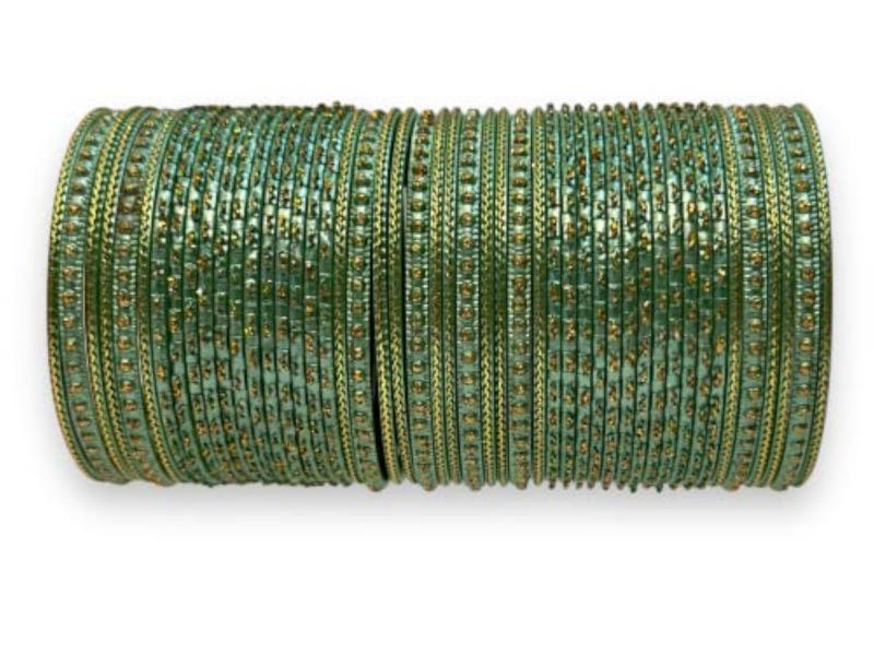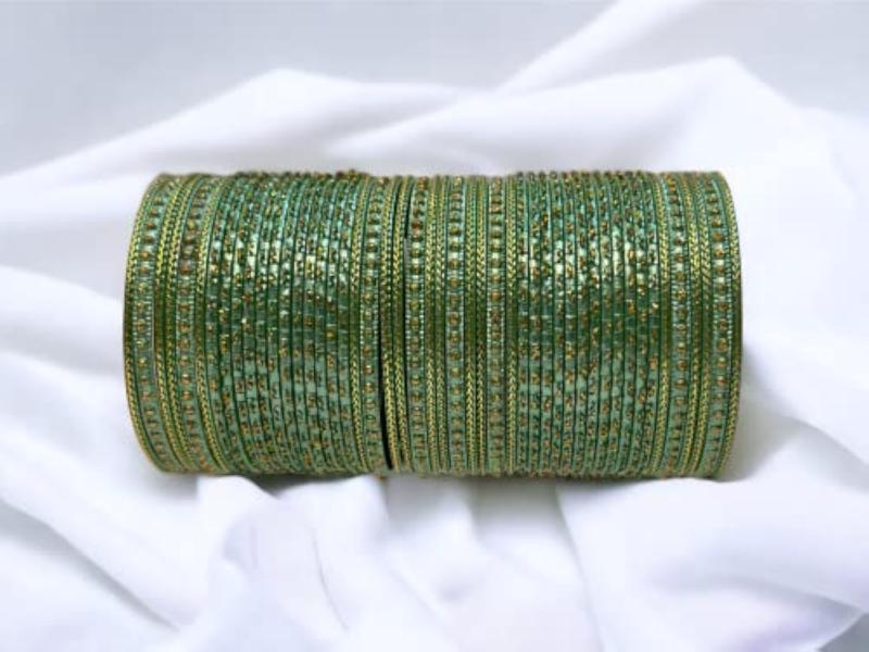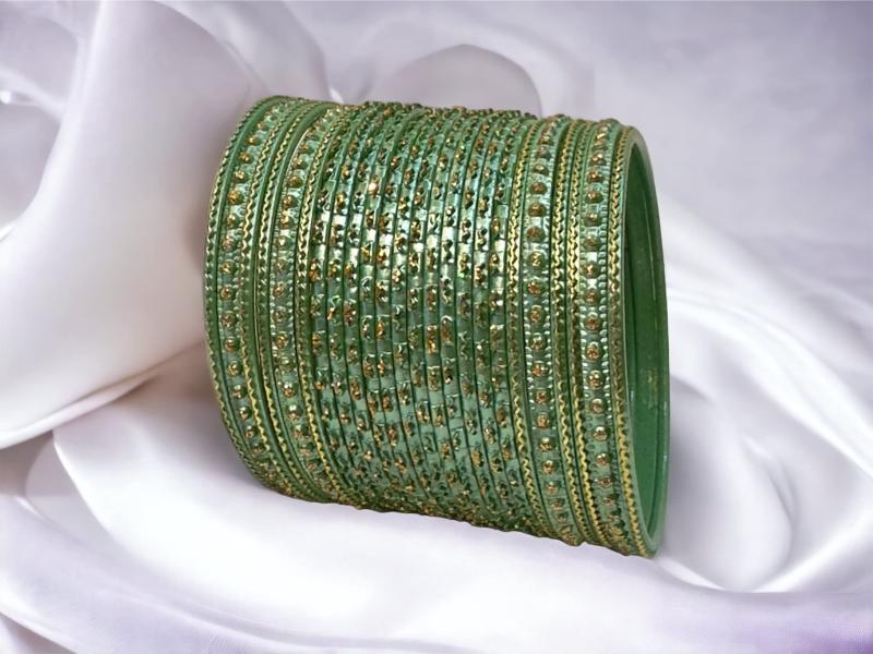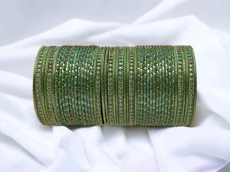 Adorn your wrist with these stunning green metal bangles featuring a shine finish, perfect for any occasion.