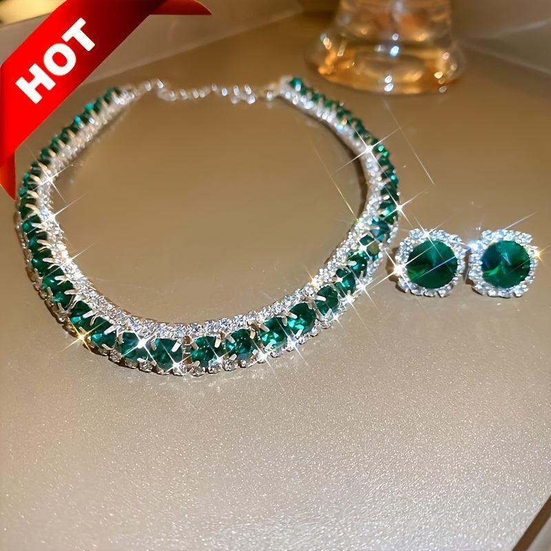 Make a statement with this elegant green necklace and earrings set, perfect for evening parties or Eid celebrations.