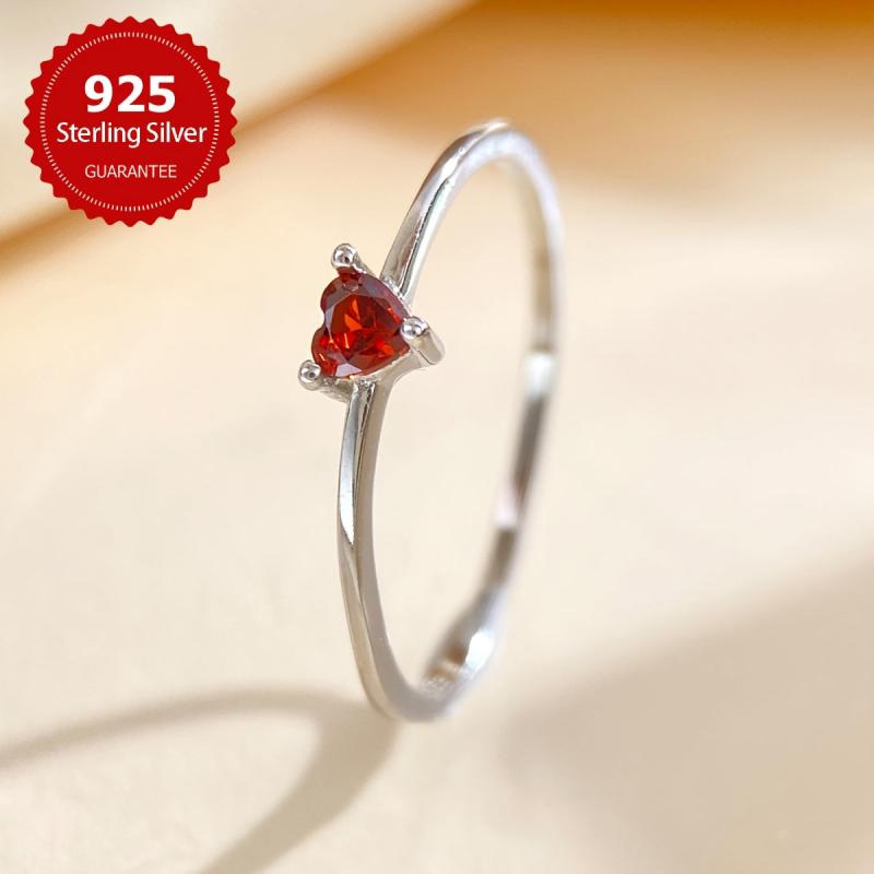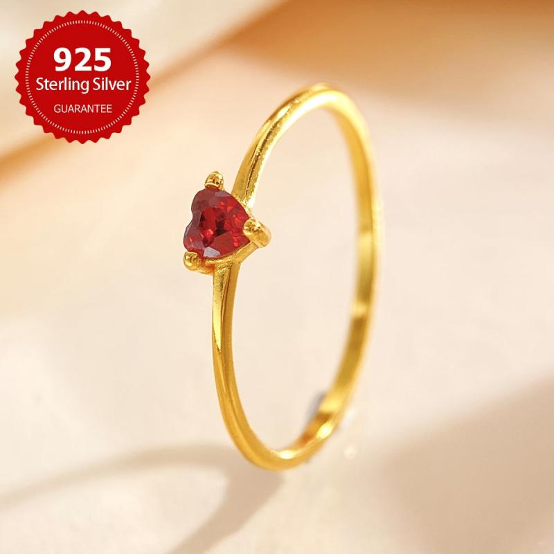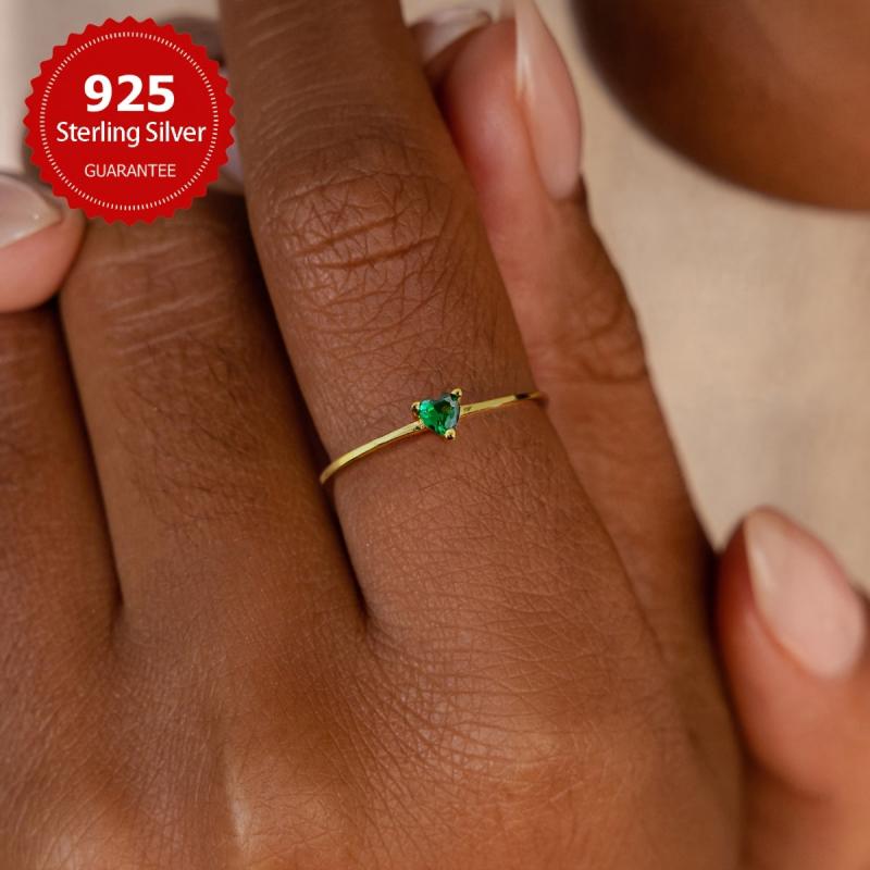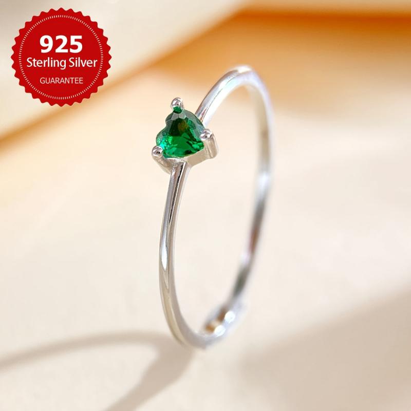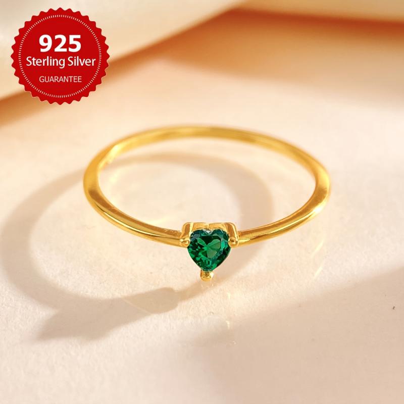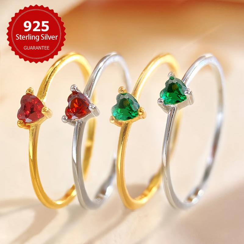 This thin S925 pure silvery golden ring features a green or red heart design, perfect for showcasing your birthstone in style.
